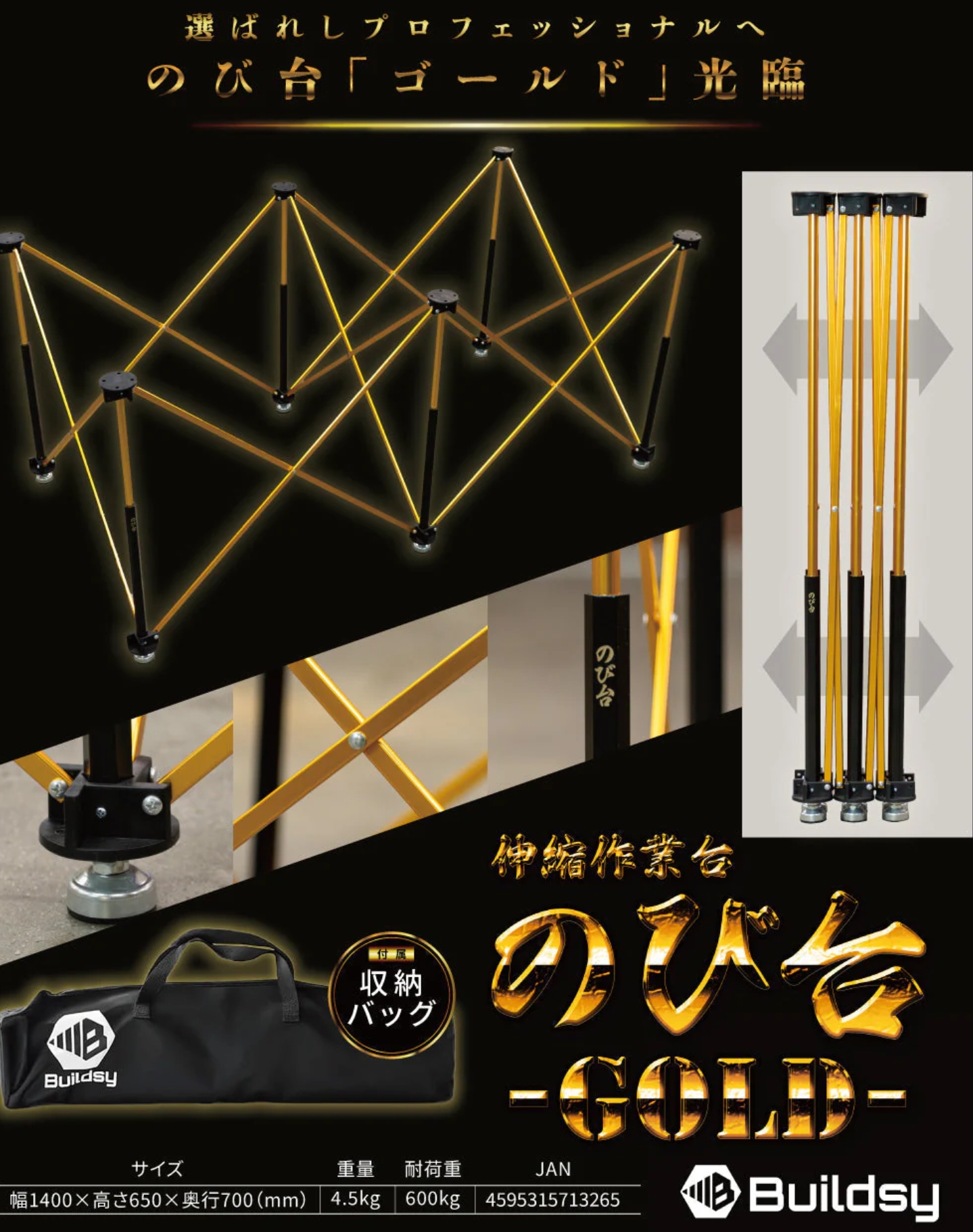 【Buildsy】 のび台 限定ゴールドカラー W1400H650