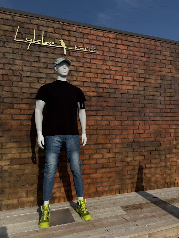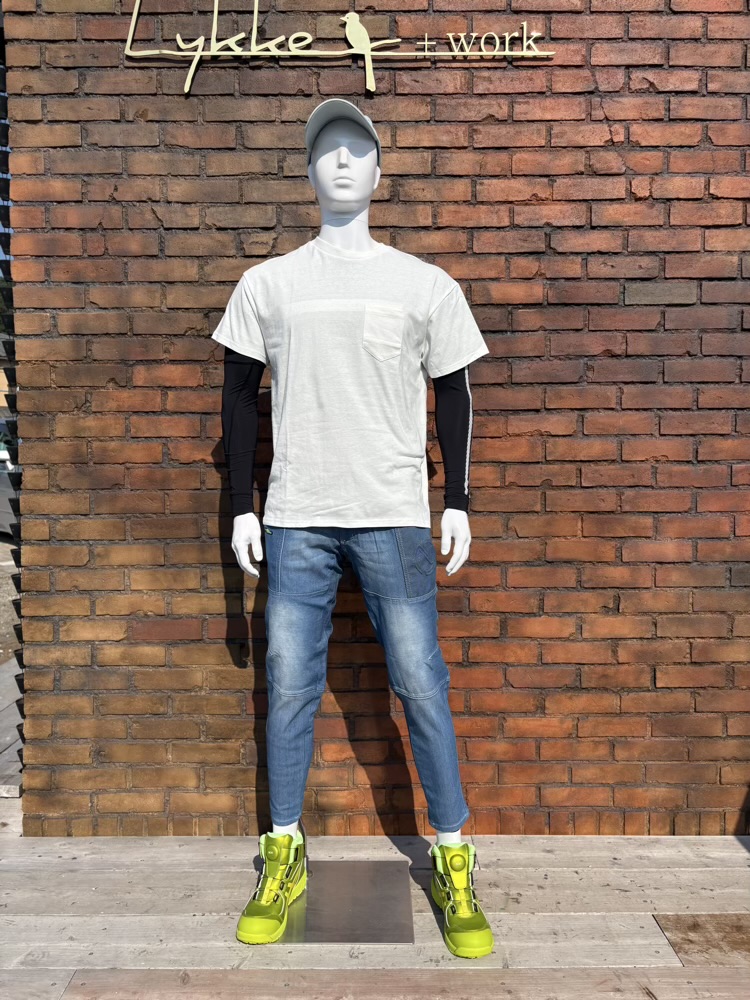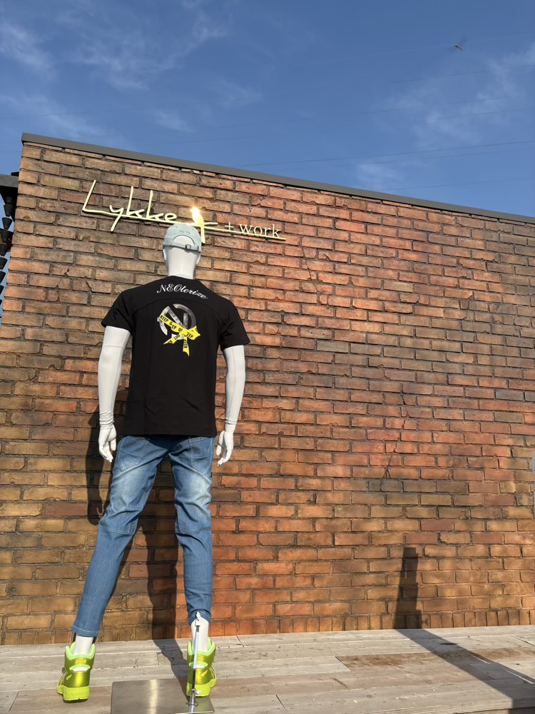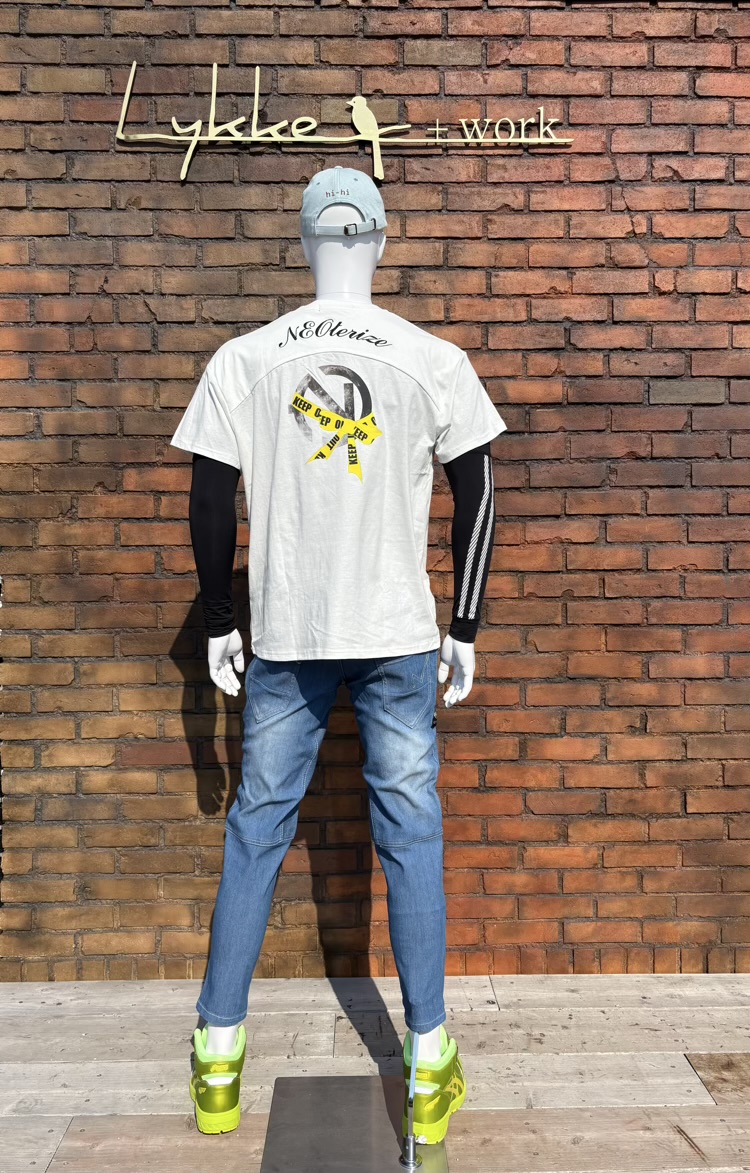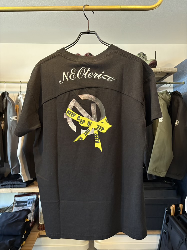 バックの刺繍ロゴと大胆なプリントが目を惹く吸汗速乾Tシャツ。