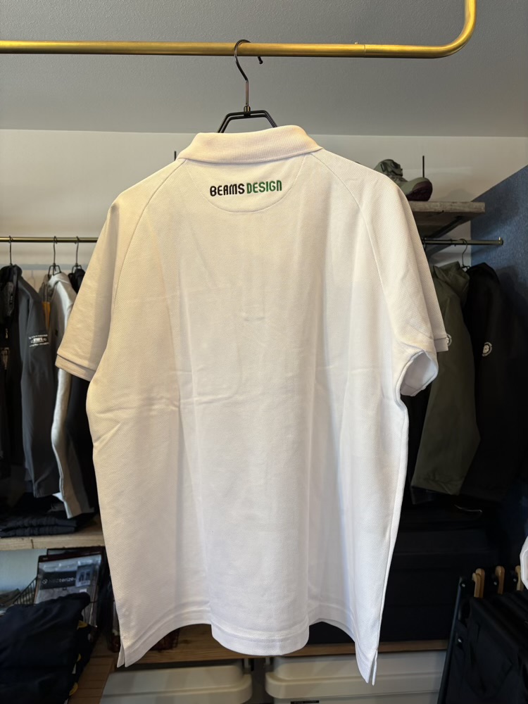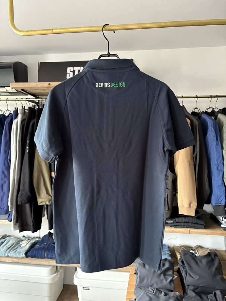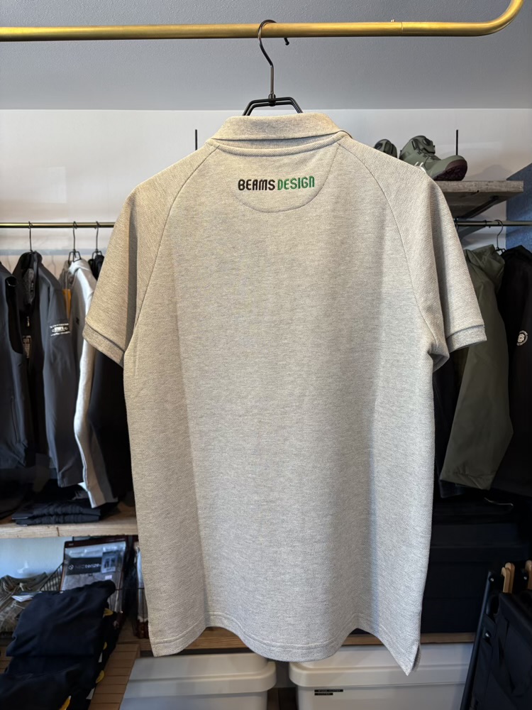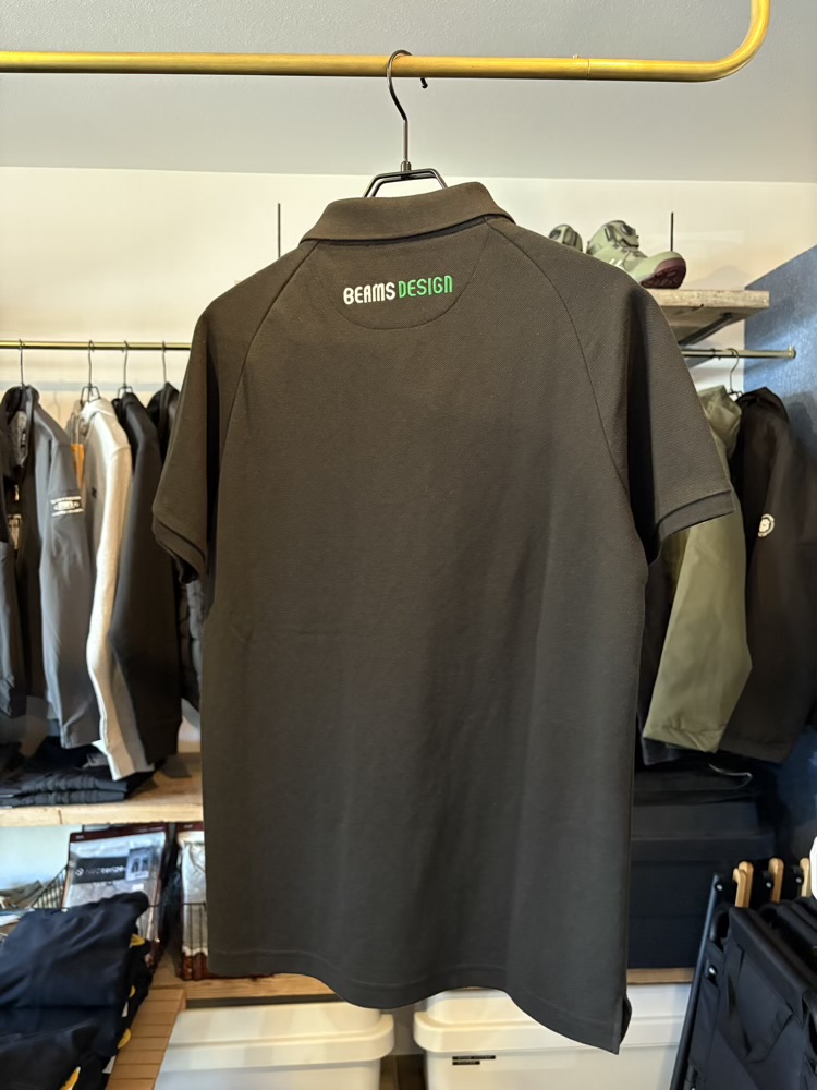 シンプルで使い勝手の良いポロシャツのバックネック下に存在感のあるBEAMS DESIGNのロゴ刺繍を施したポロシャツです。