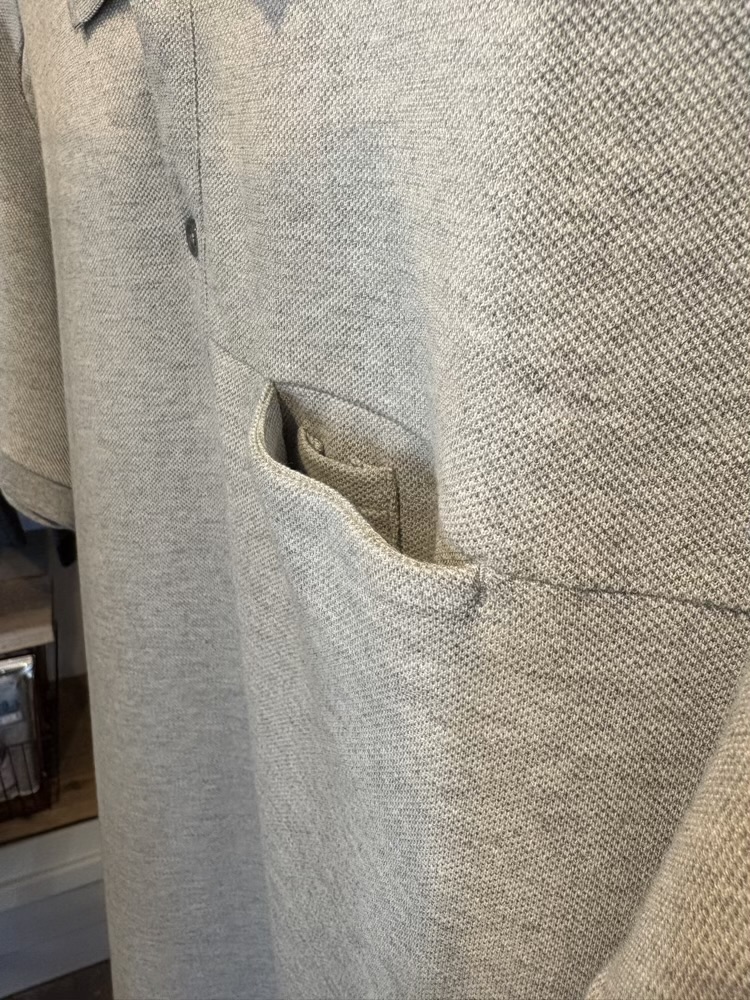 胸のスラッシュポケットは切り替えを利用しているので、ポケットが見えにくくスッキリとした印象を持たせながらも、