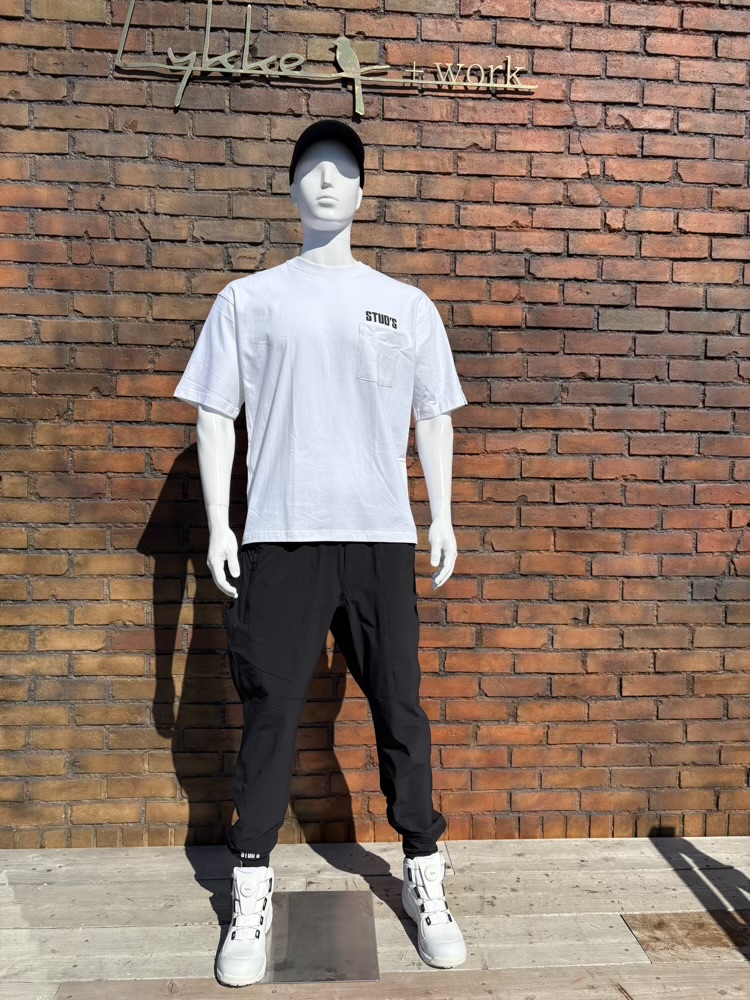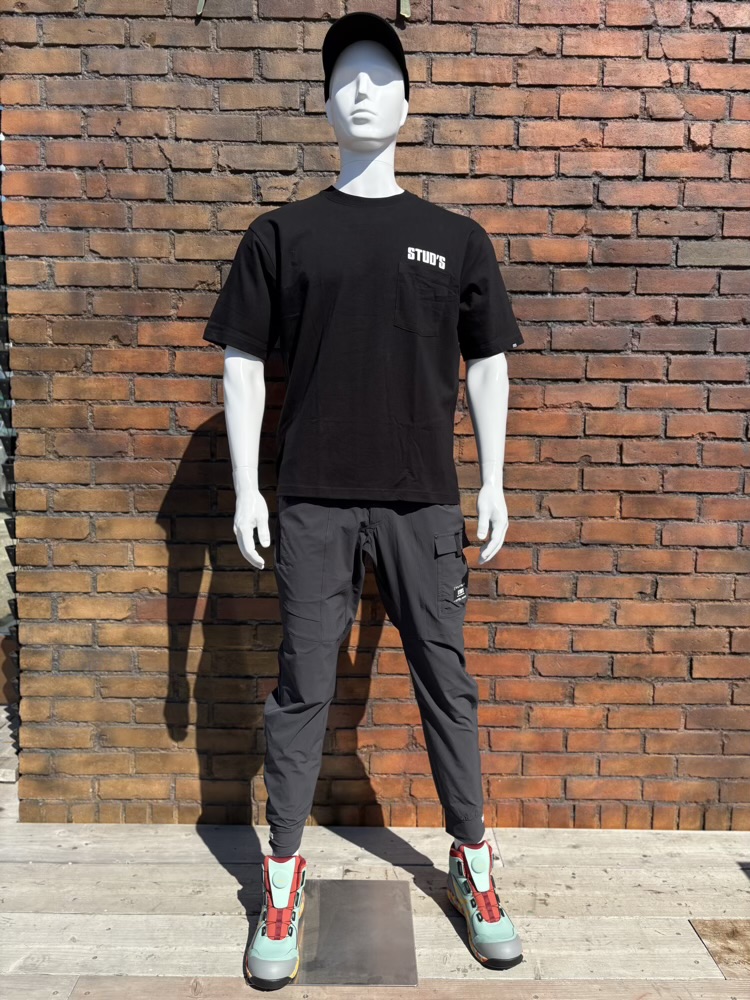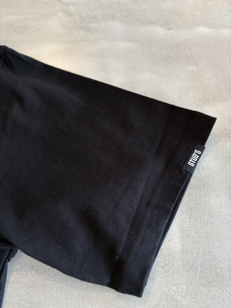 タウンユースにもばっちり馴染むSTUD’Sロゴ入りの半袖ポケTです。