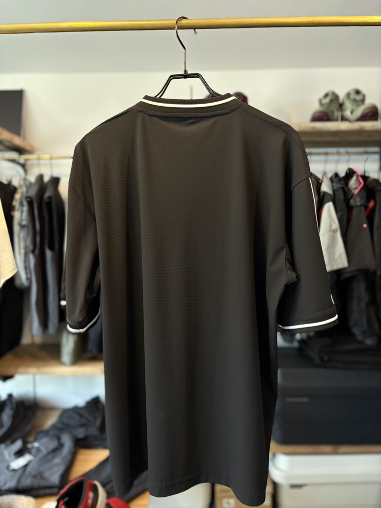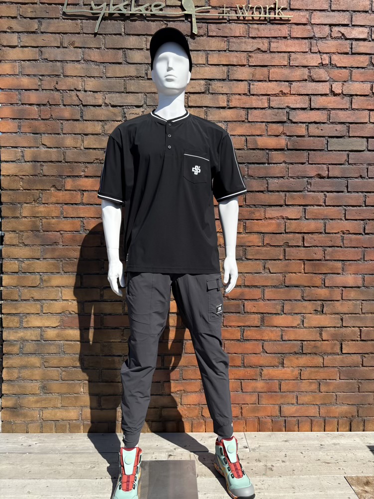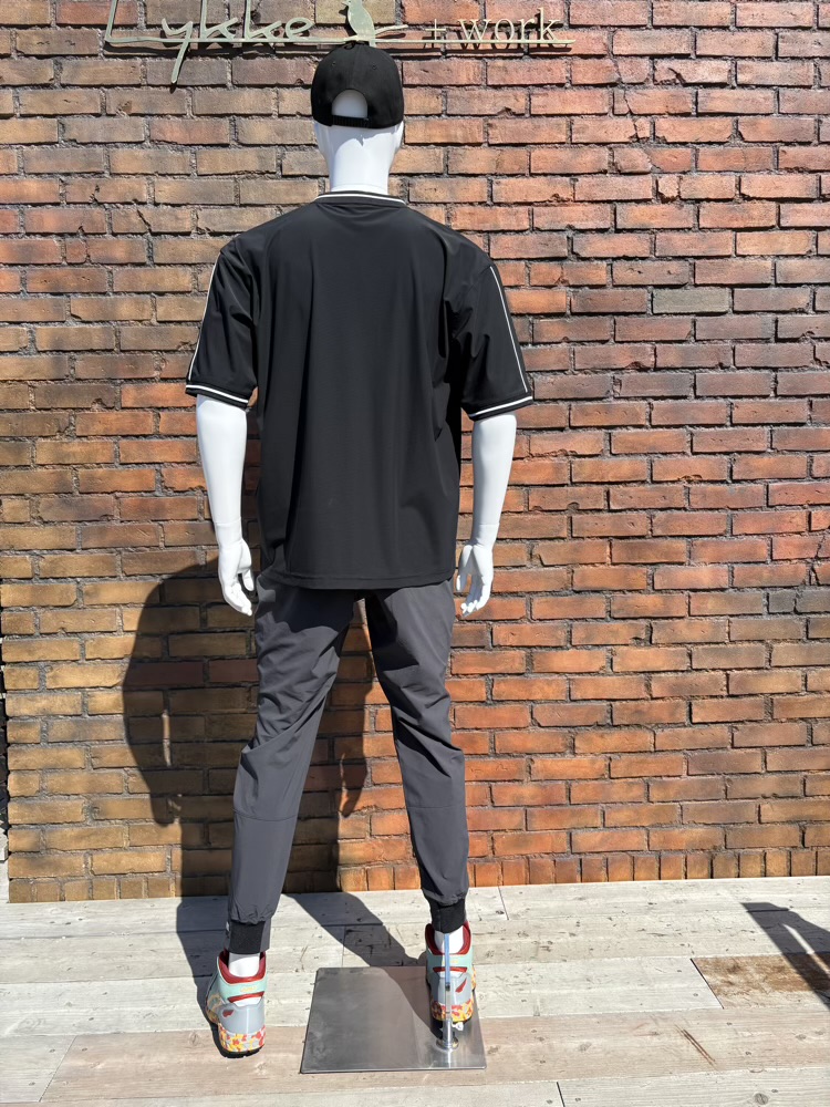 ベースボールシャツから着想を得た前開きボタン、カラーパイピング、マーク刺繍をTシャツに落とし込み、スポーツスタイルやストリートスタイルになじむデザインに仕上げています。