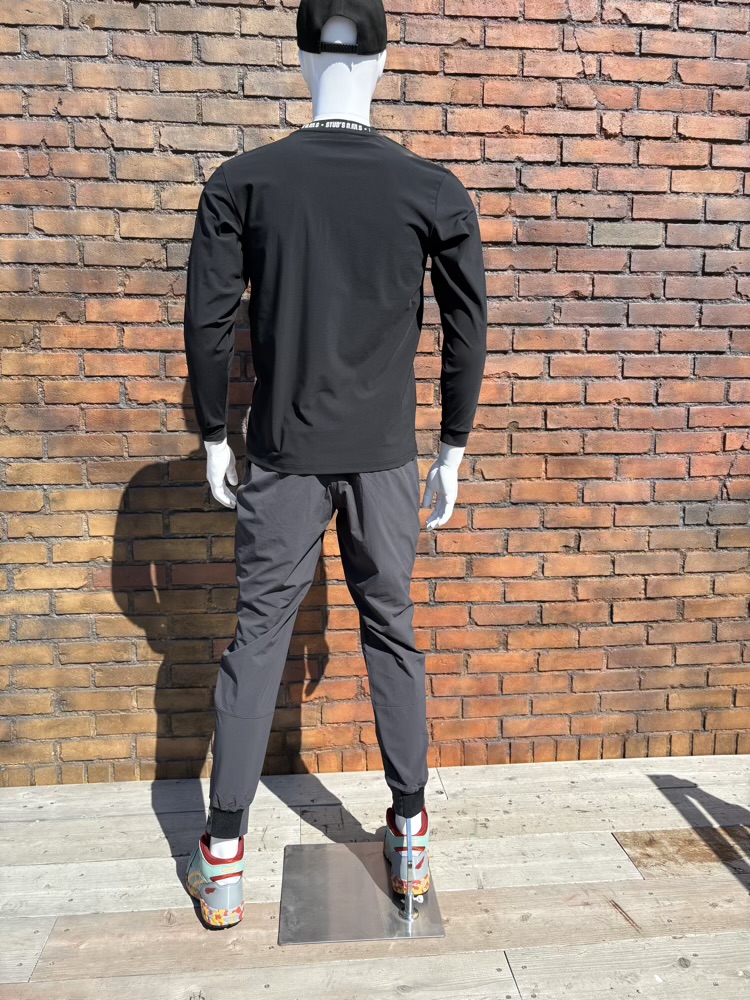 布帛やコンプレッションシャツに近いしっかりとしたハリとコシのある生地で手持ち感が抜群です。またニット生地にポリウレタンを混紡しているので縦横斜め全方向に対して高いストレッチ性も併せ持っています。