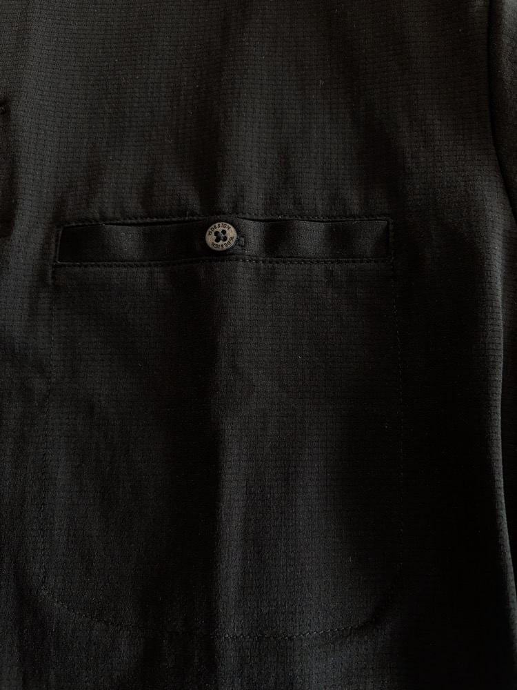 左胸玉縁ポケット、右袖ペン差し、左袖オリジナルワッペン付き。