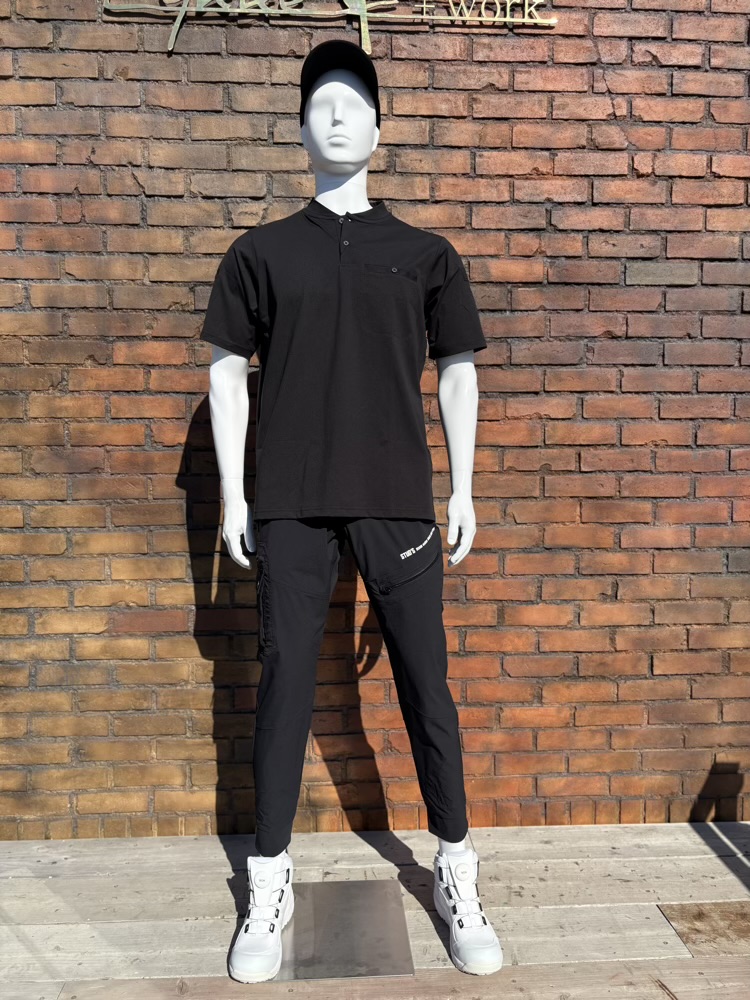 消臭ナイロン糸を使用し、汗臭等の嫌なニオイを断つ涼感ヘンリーネックシャツ。