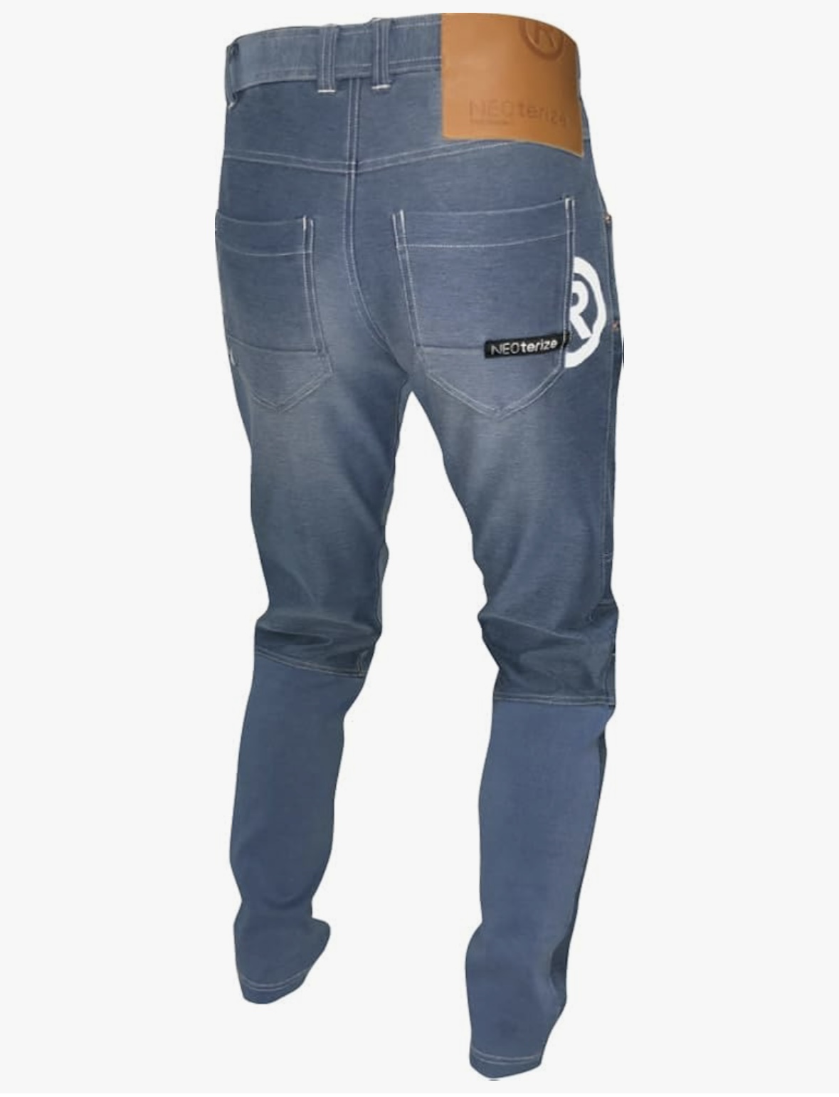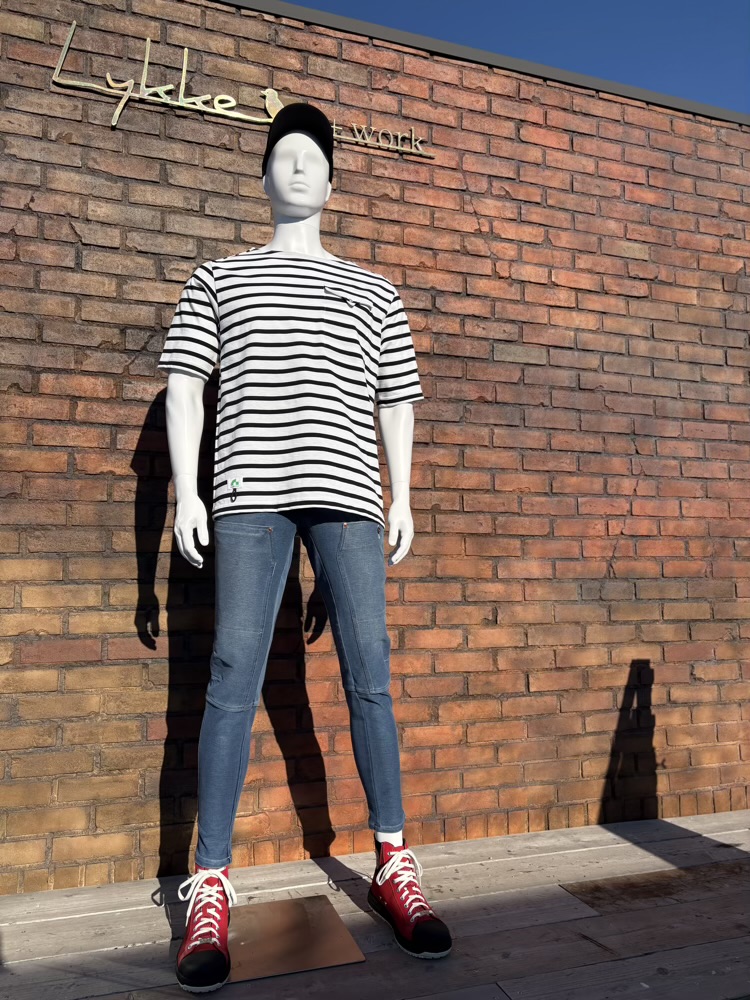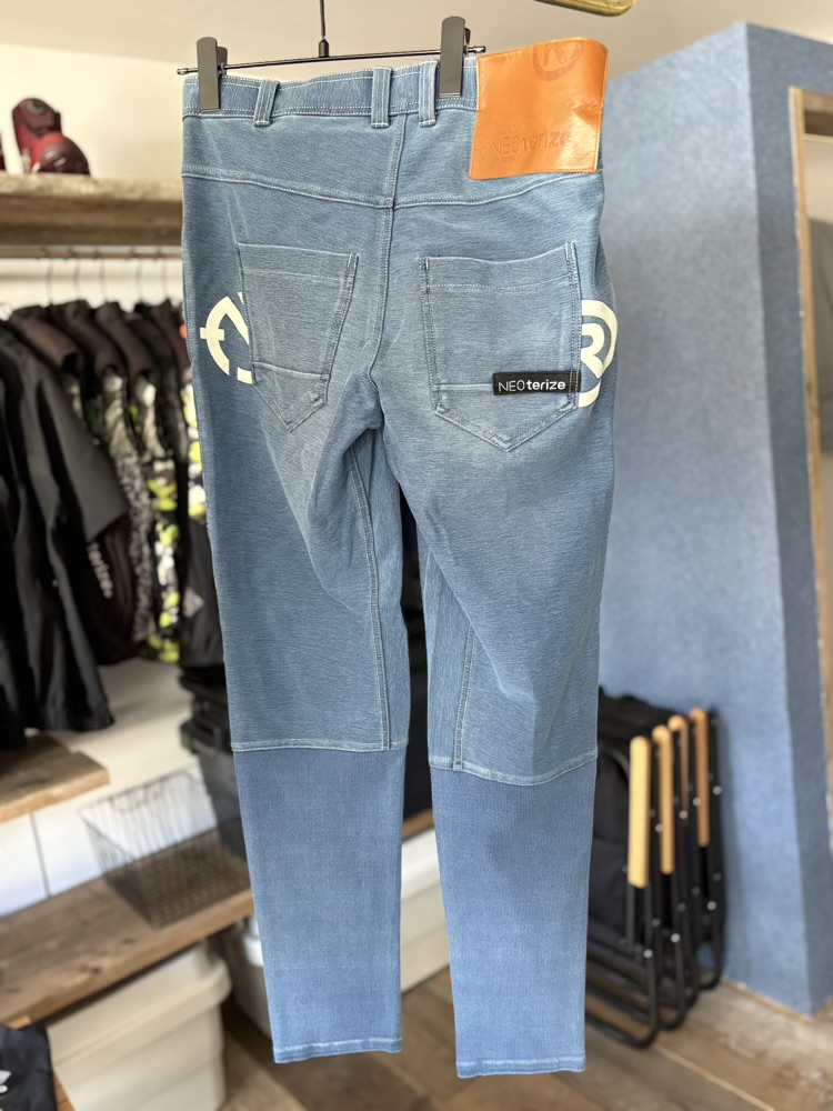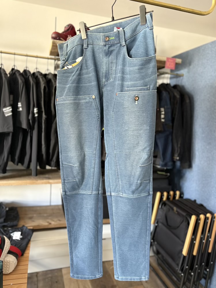デニムだけどごわつかない、ニット素材で体の動きにフィット。