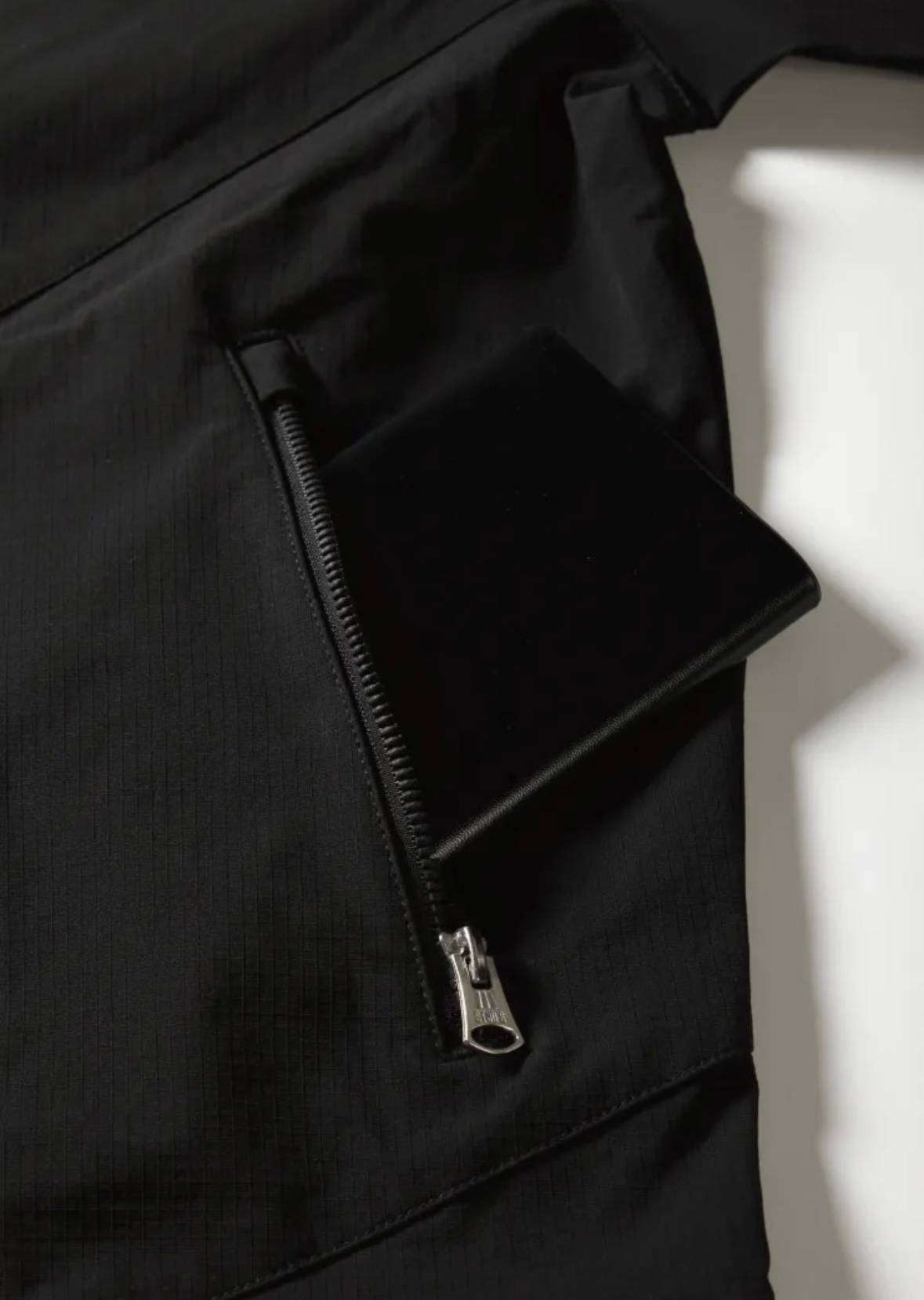 両脇ファスナーポケット、右胸ファスナーポケット、左袖ペン差し付きで収納力は抜群です。