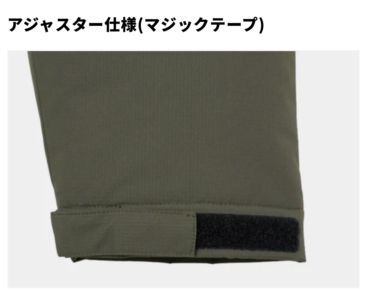 袖口と裾はアジャスター付きで冷気の侵入を防ぎます。