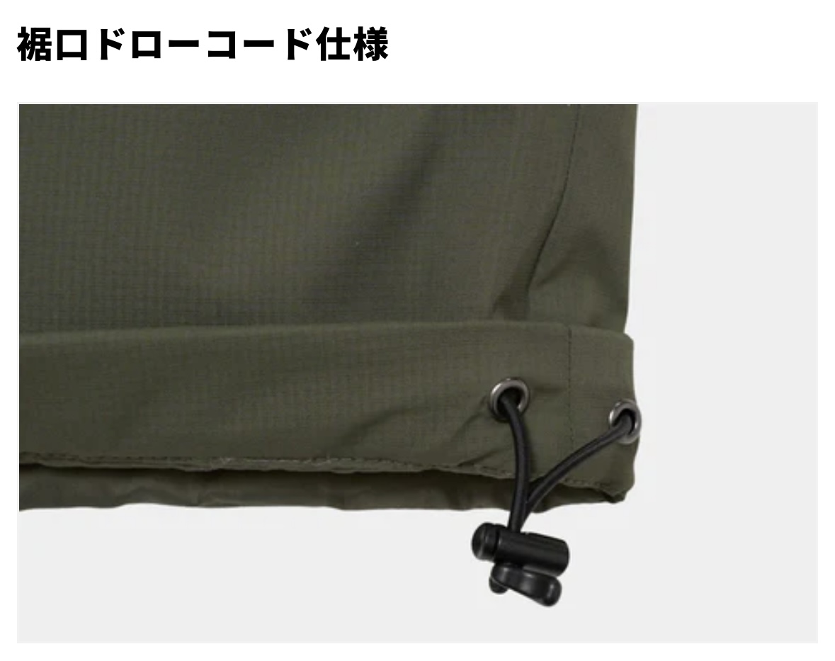 ・袖口・裾はアジャスター付きで、冷気の侵入をブロック