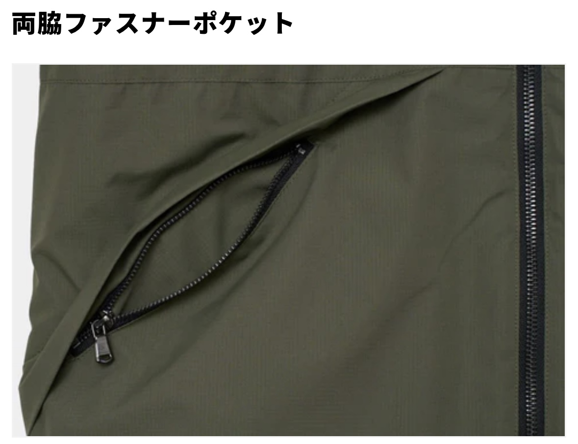 両脇逆玉緑ポケットはファスナー付きの仕様。