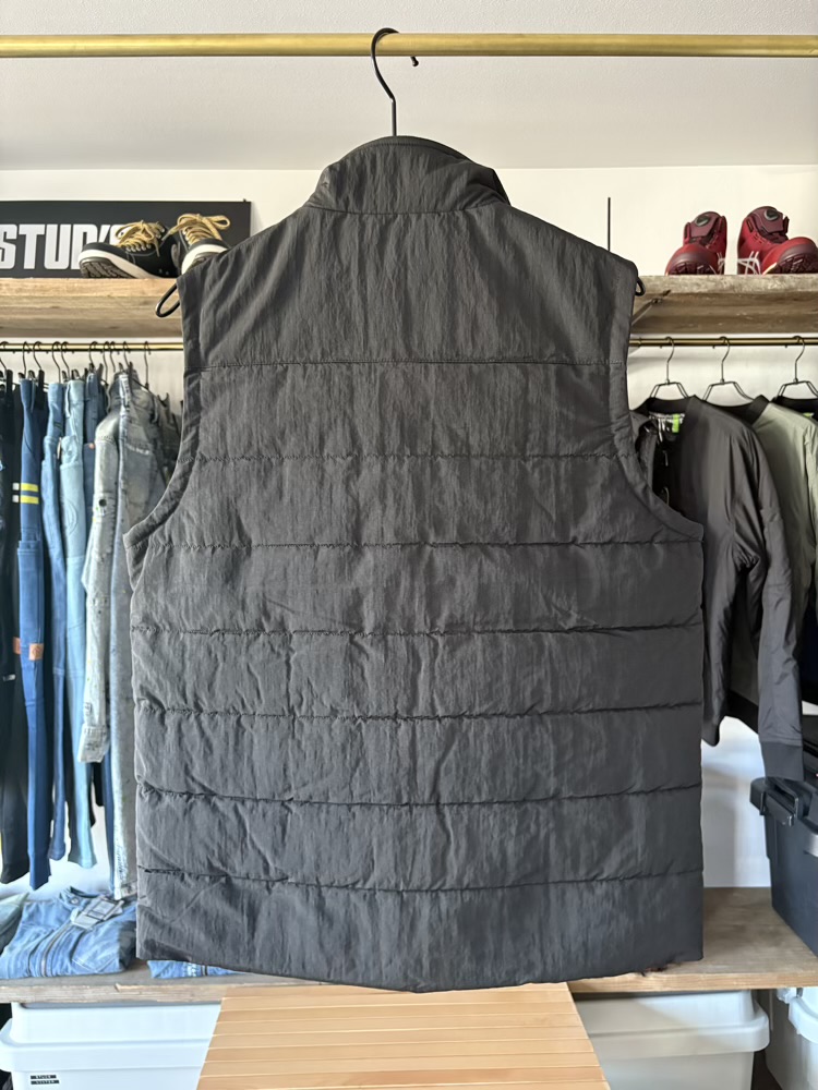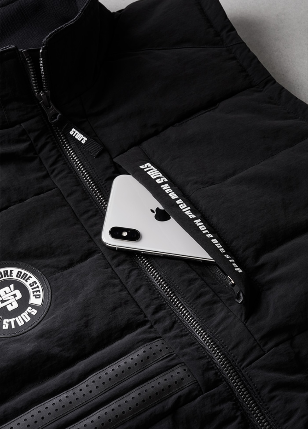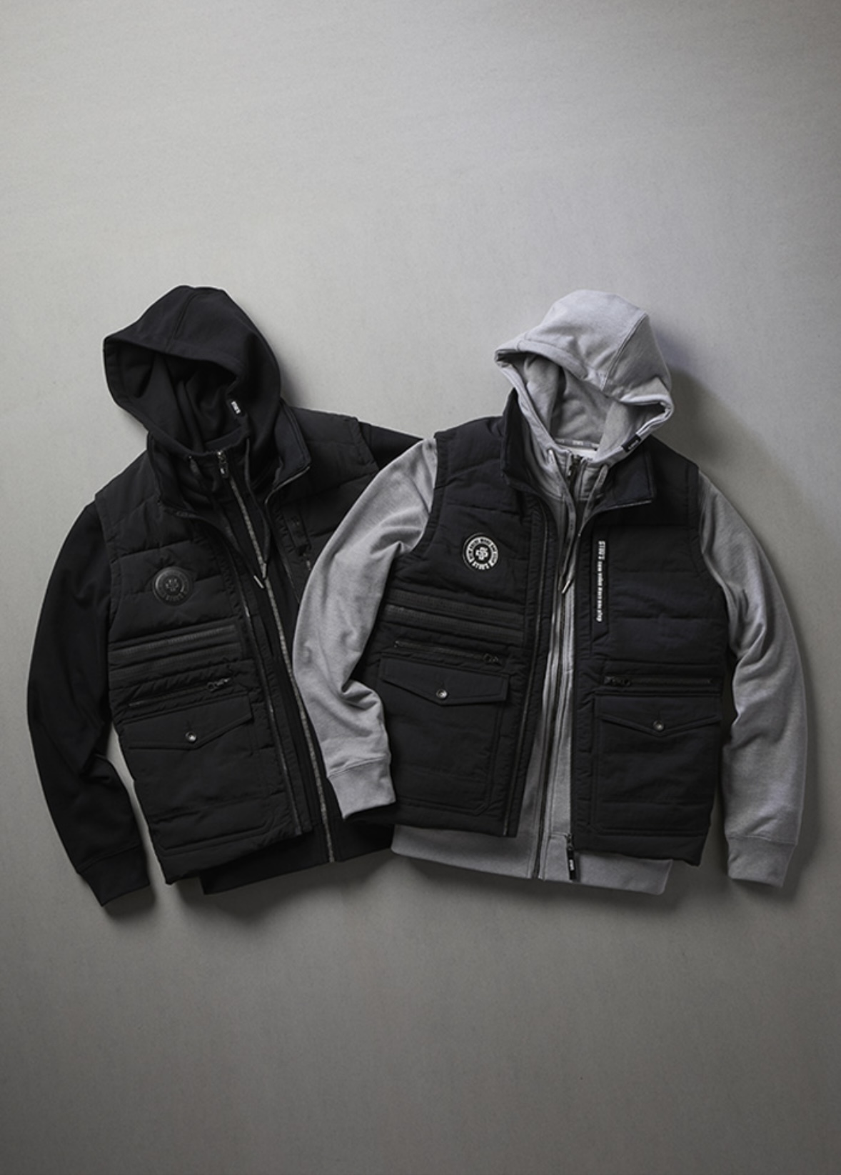 デザイン性と機能性を高いレベルで融合した中綿入り防寒ベスト。