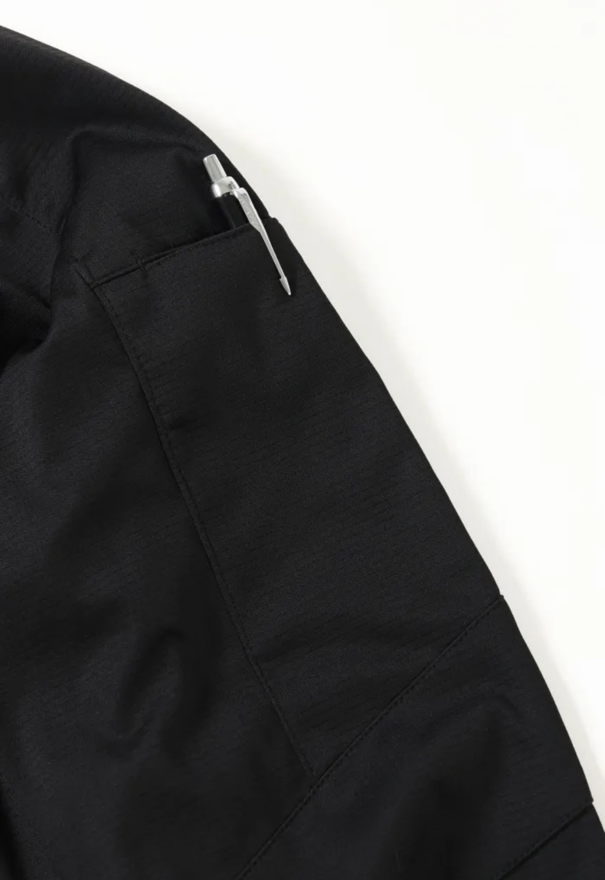 大事なものが収納できる脇ファスナーポケットに加え、ポケット内部はハンドウォーム仕様で手甲側を起毛素材にし保温性をプラスしています。左袖ペン差し、脇部分(裏側)の消臭テープ等、カジュアルな見た目ながらワークウェア由来の機能性を持っています。