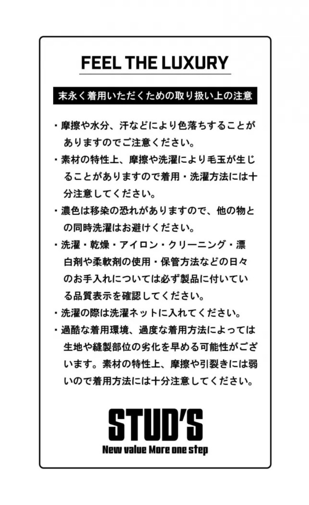 また着用、洗濯など日々の取扱いに関しては商品に付いている品質表示タグを確認いただくと末永くご着用いただけます。