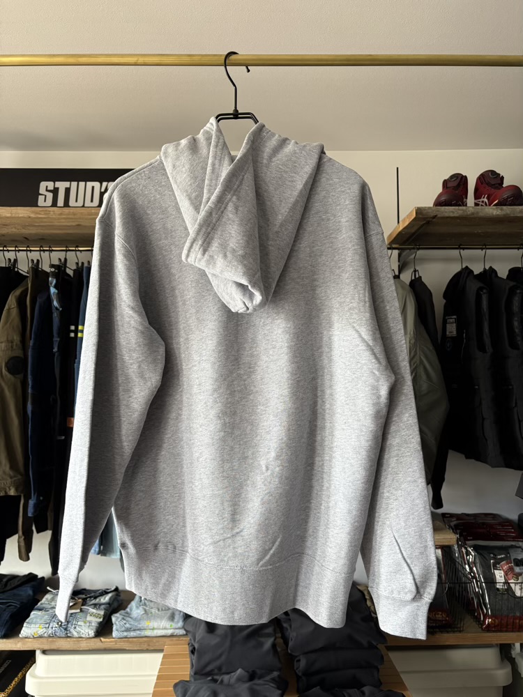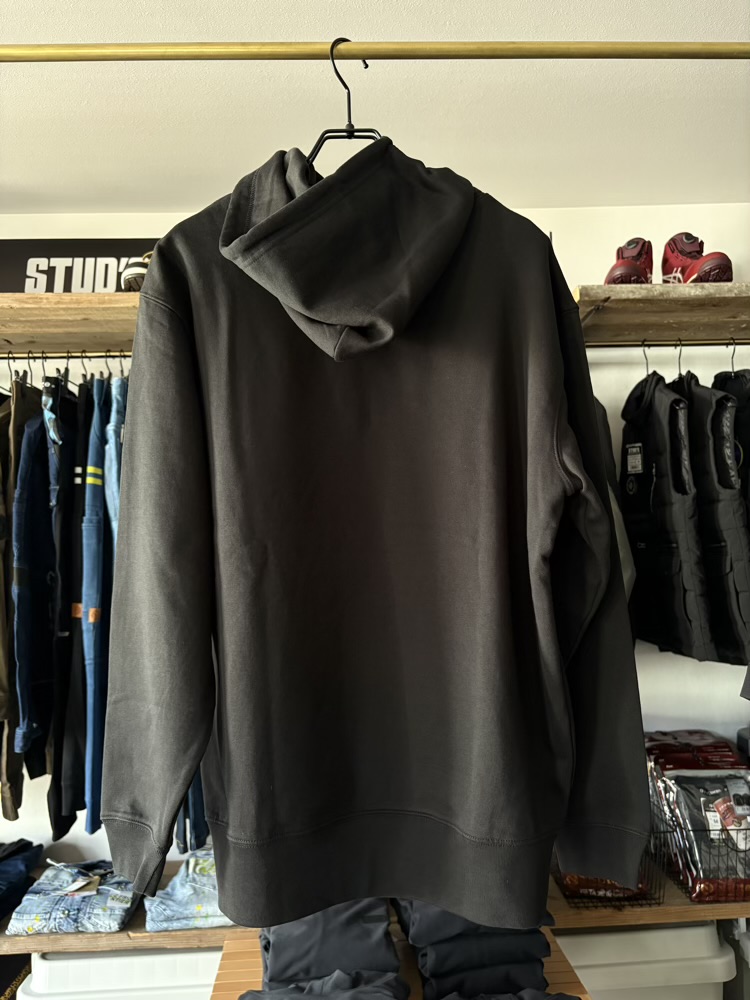 定番シルエットのシンプルデザインに、ワンポイントでロゴプリントが入っている裏毛素材のプルパーカー。