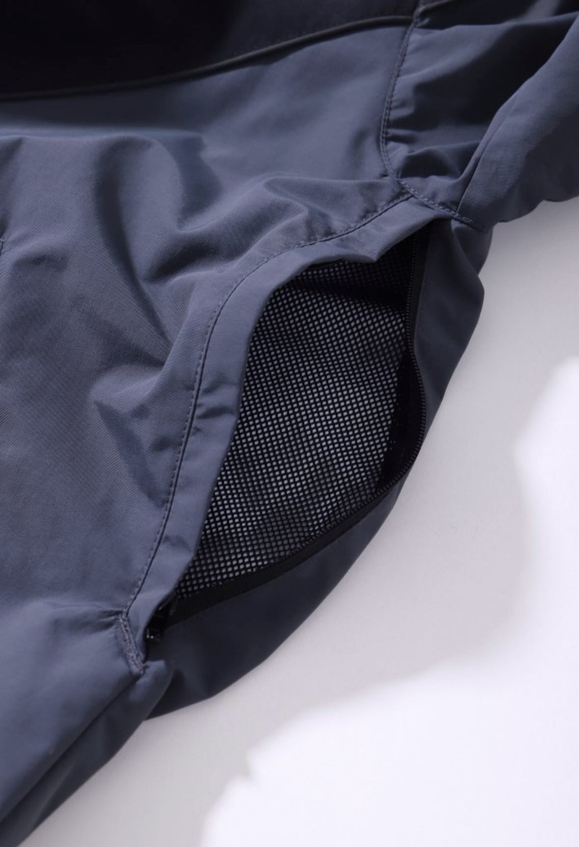 加えて両脇下にベンチレーションファスナーを搭載しているので物理的にも蒸れを逃がすことが可能です。