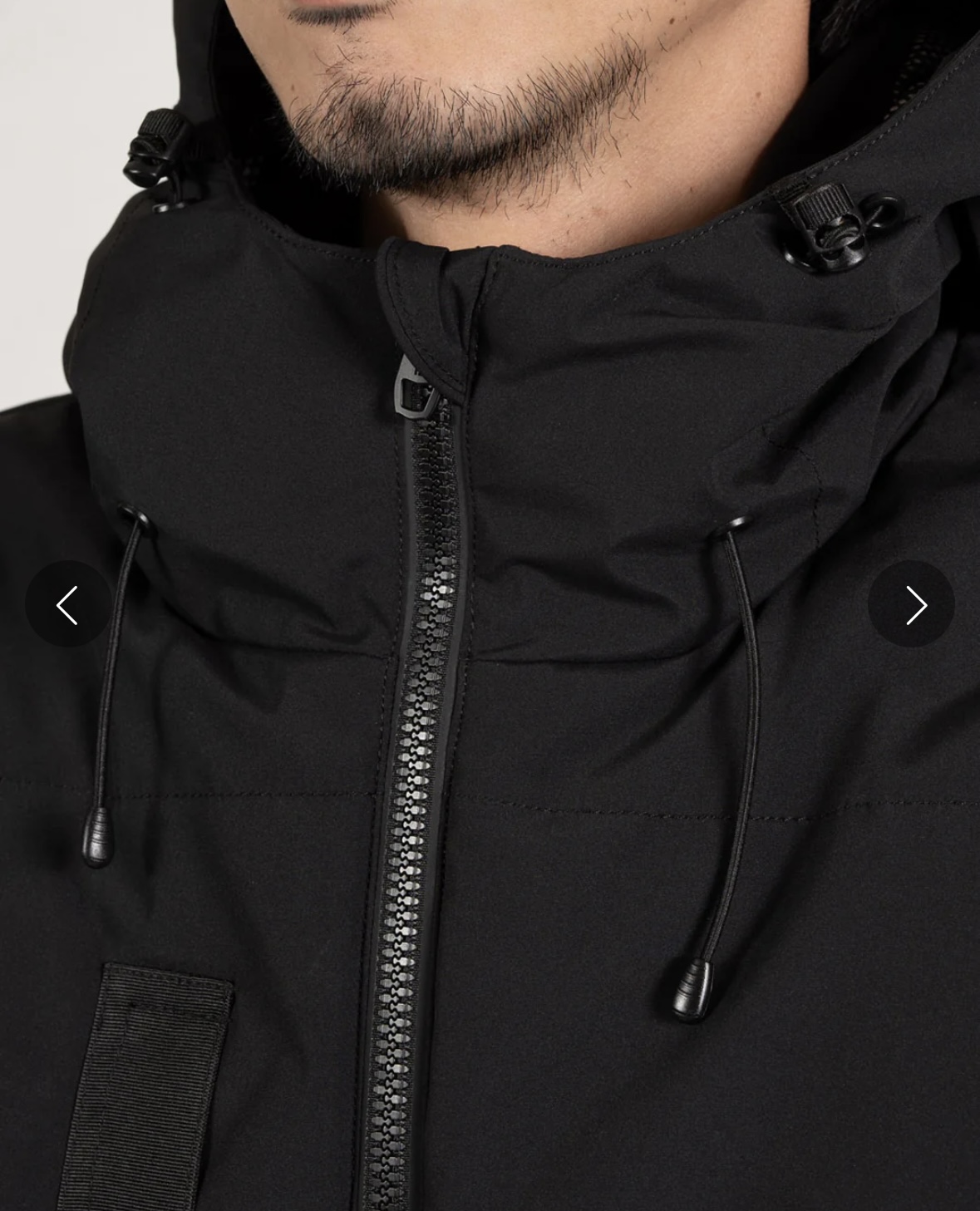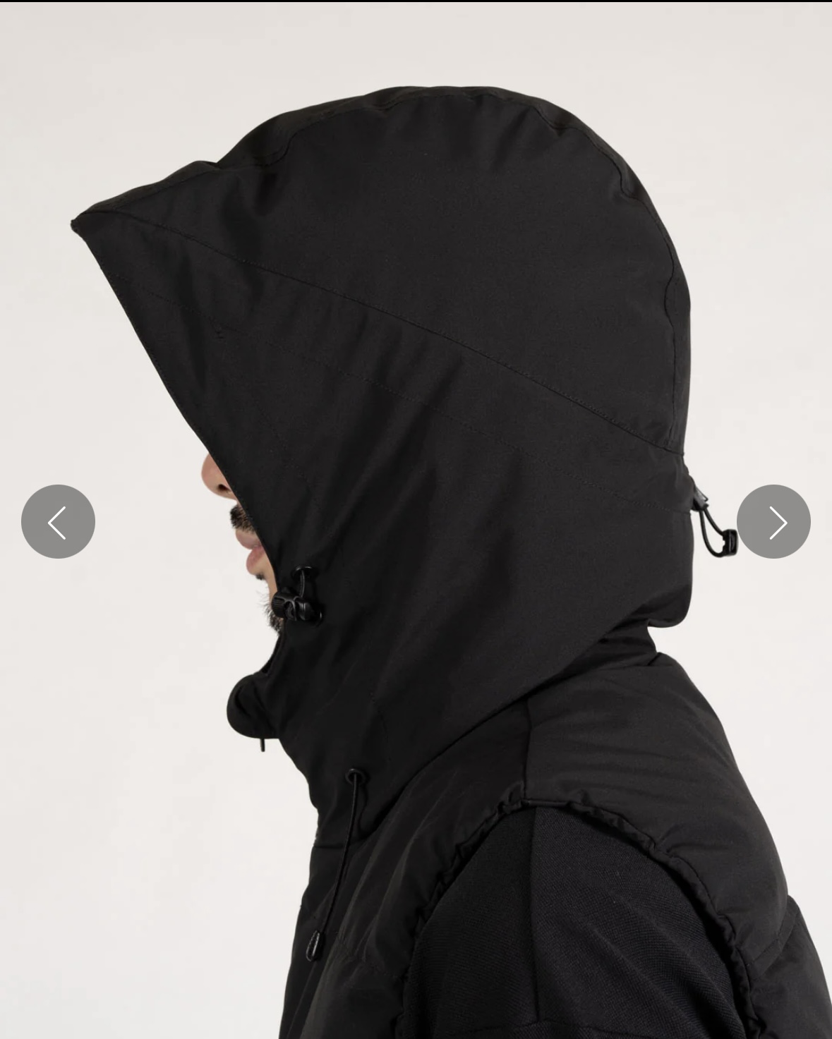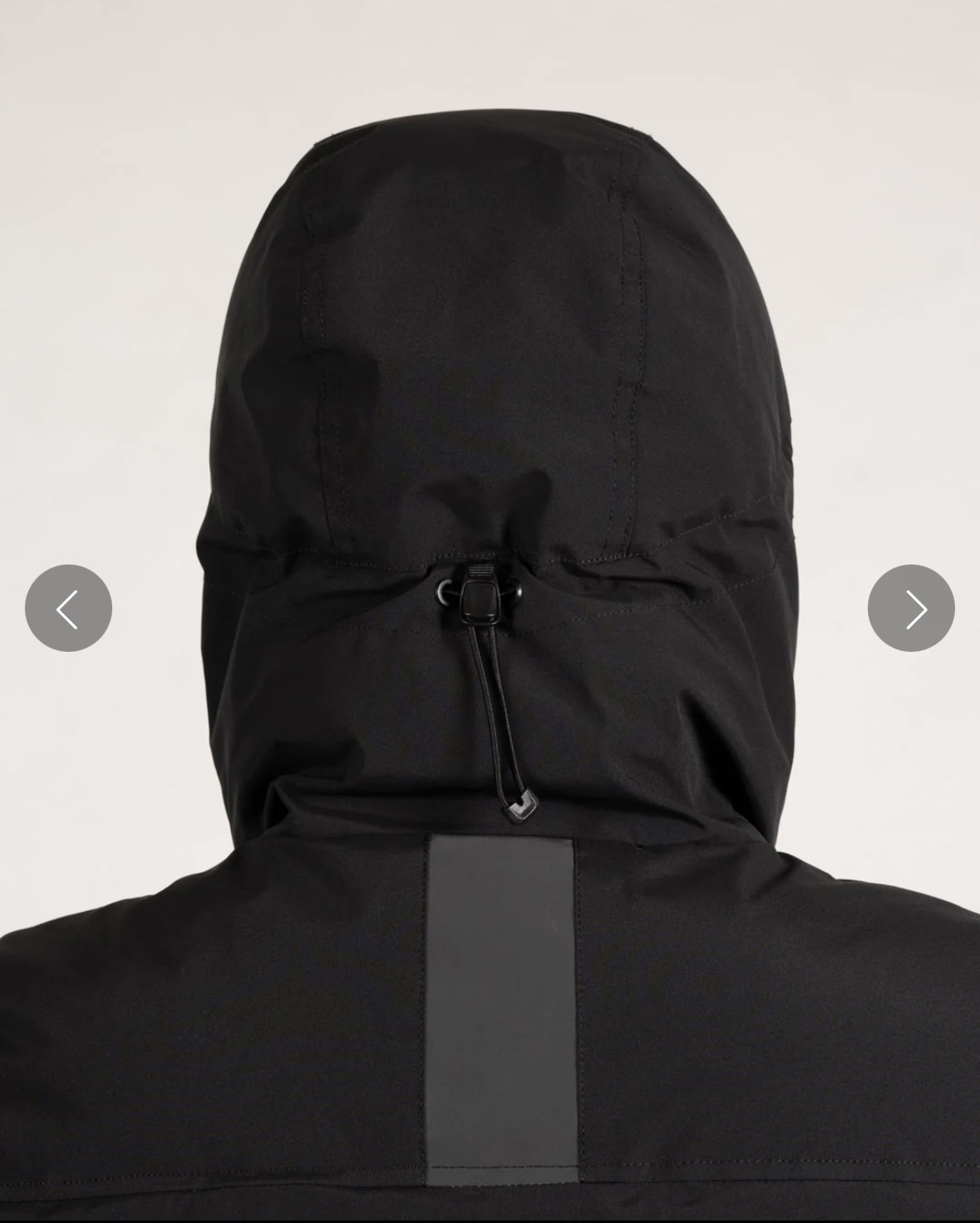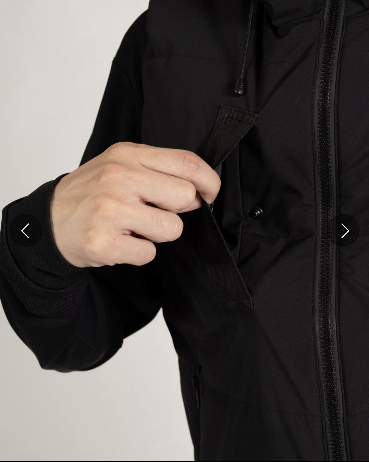 フードと裾にサイズ調節可能なアジャスター仕様。