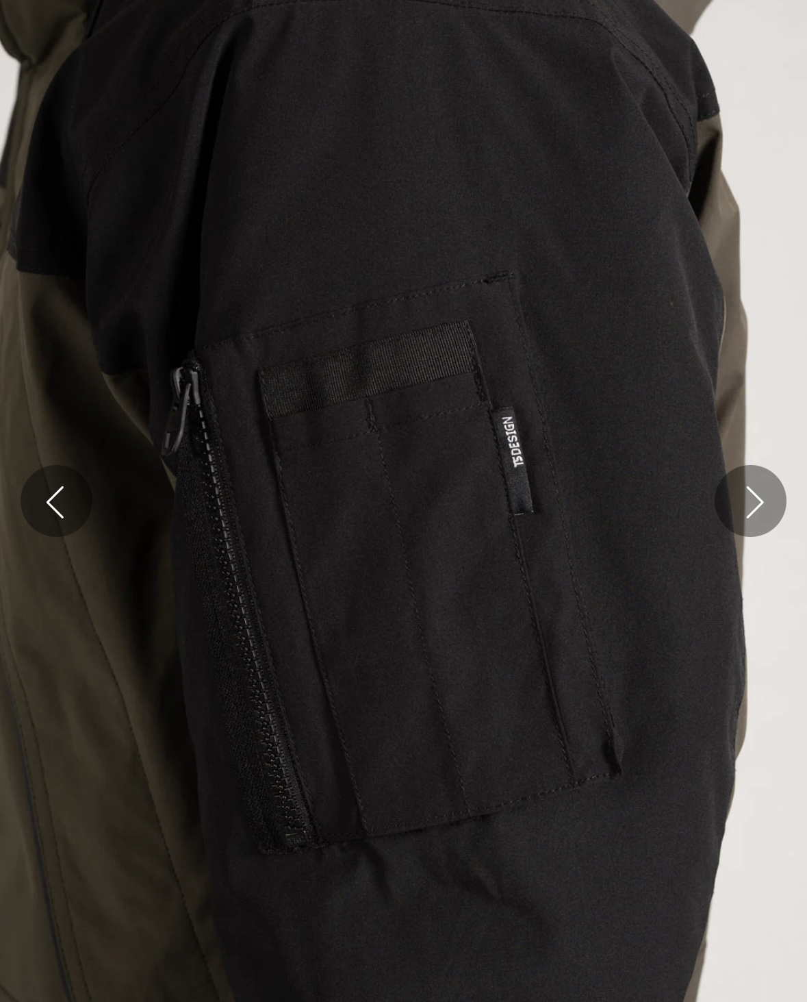 収納力:両胸ファスナーポケット/両側内ポケット/左袖ファスナーポケット