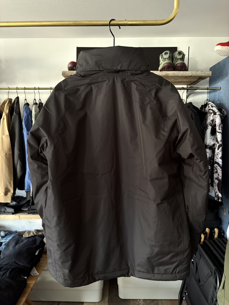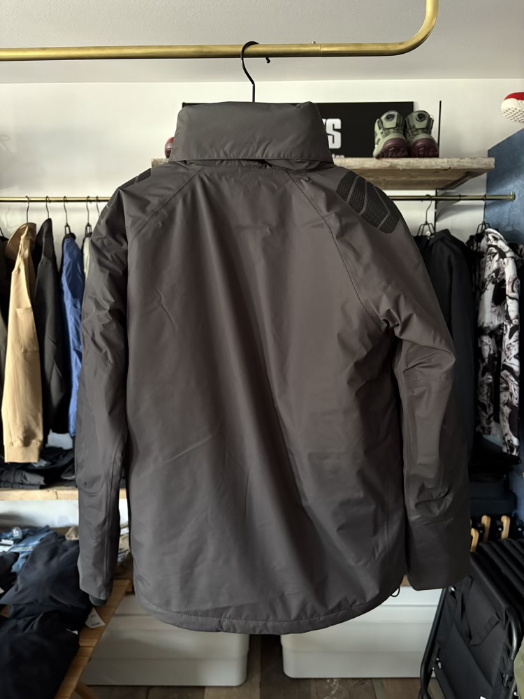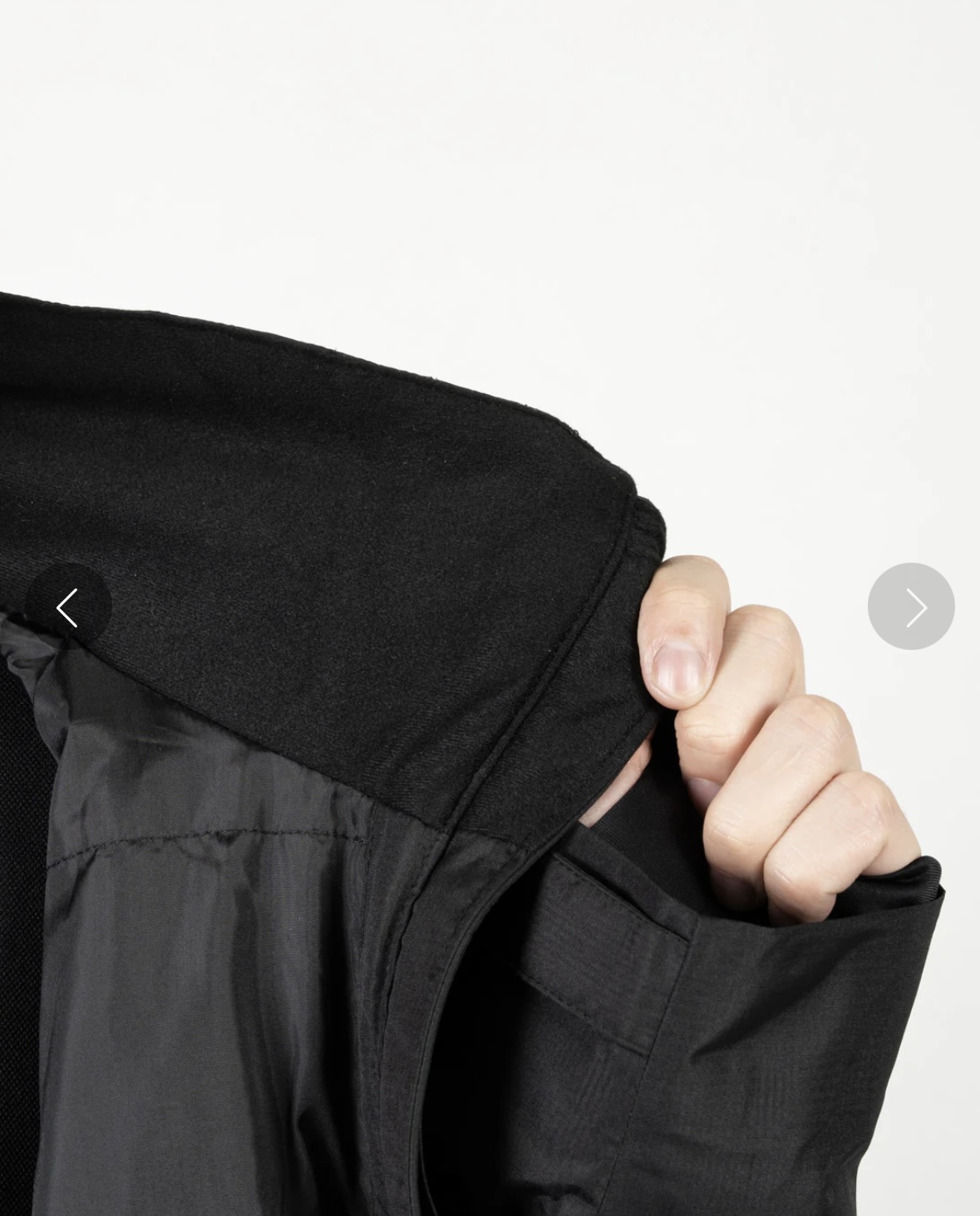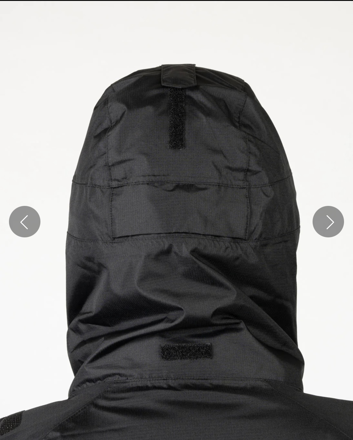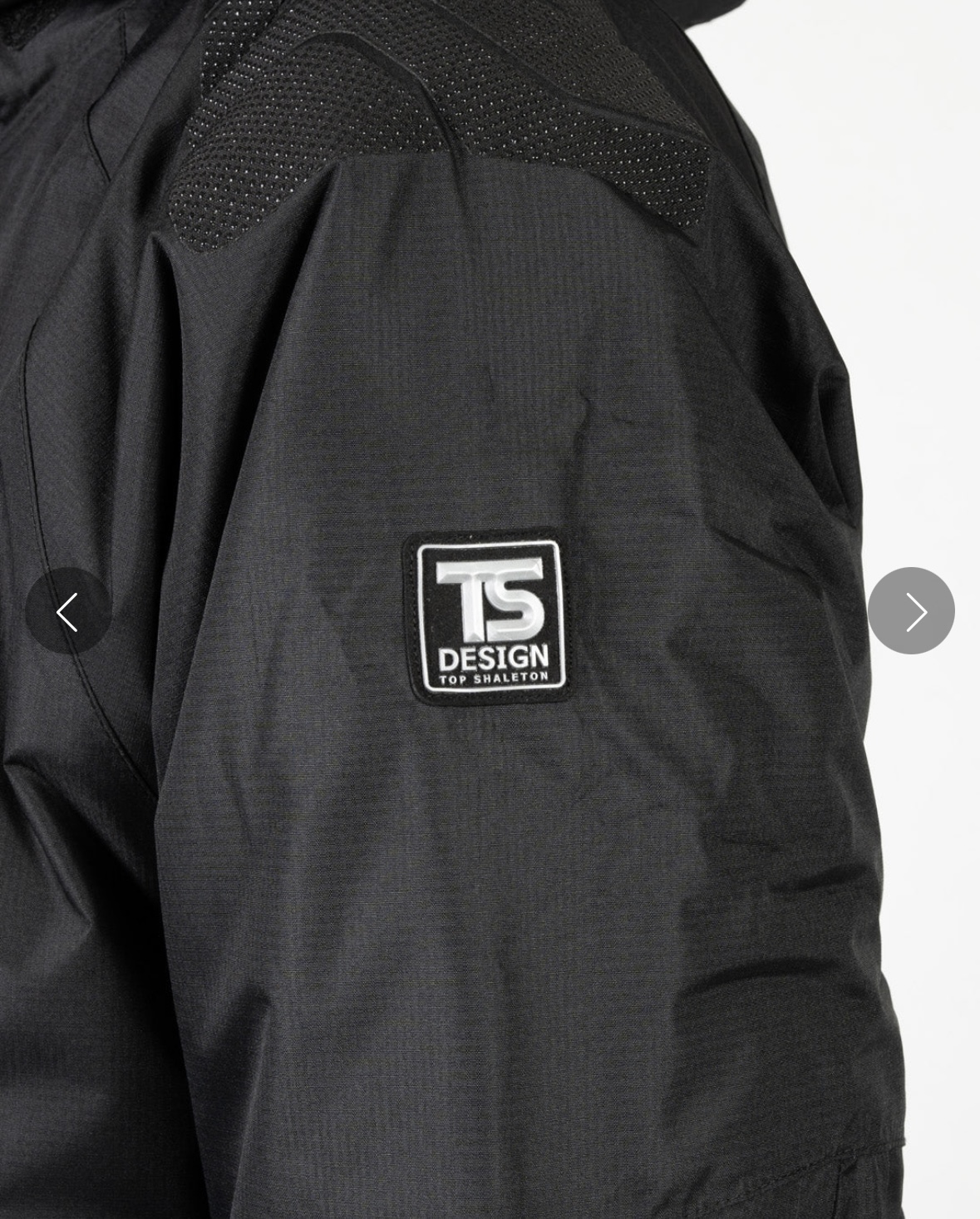 裾にドローコード、両肩に滑り止め、左袖にはオリジナルワッペン付き。