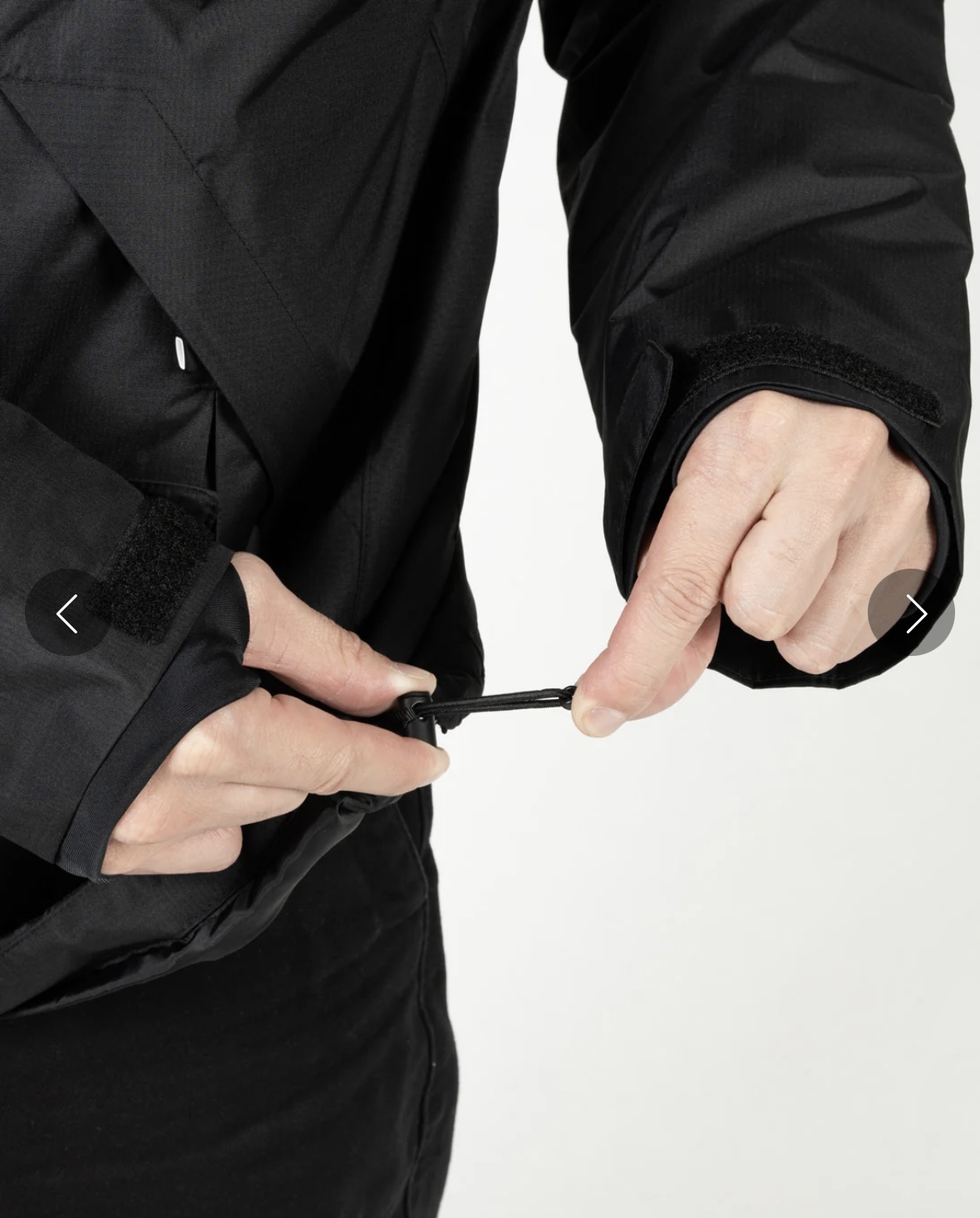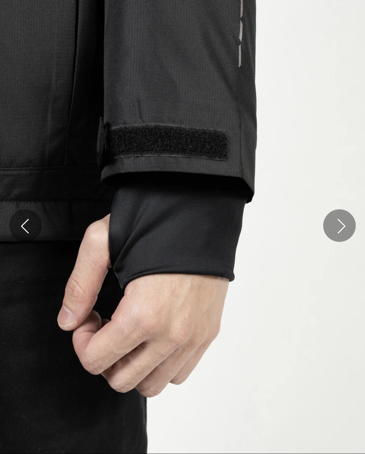 袖口はマジックテープのアジャスターとインナーカフ仕様で冷たい空気の侵入を防ぐ。