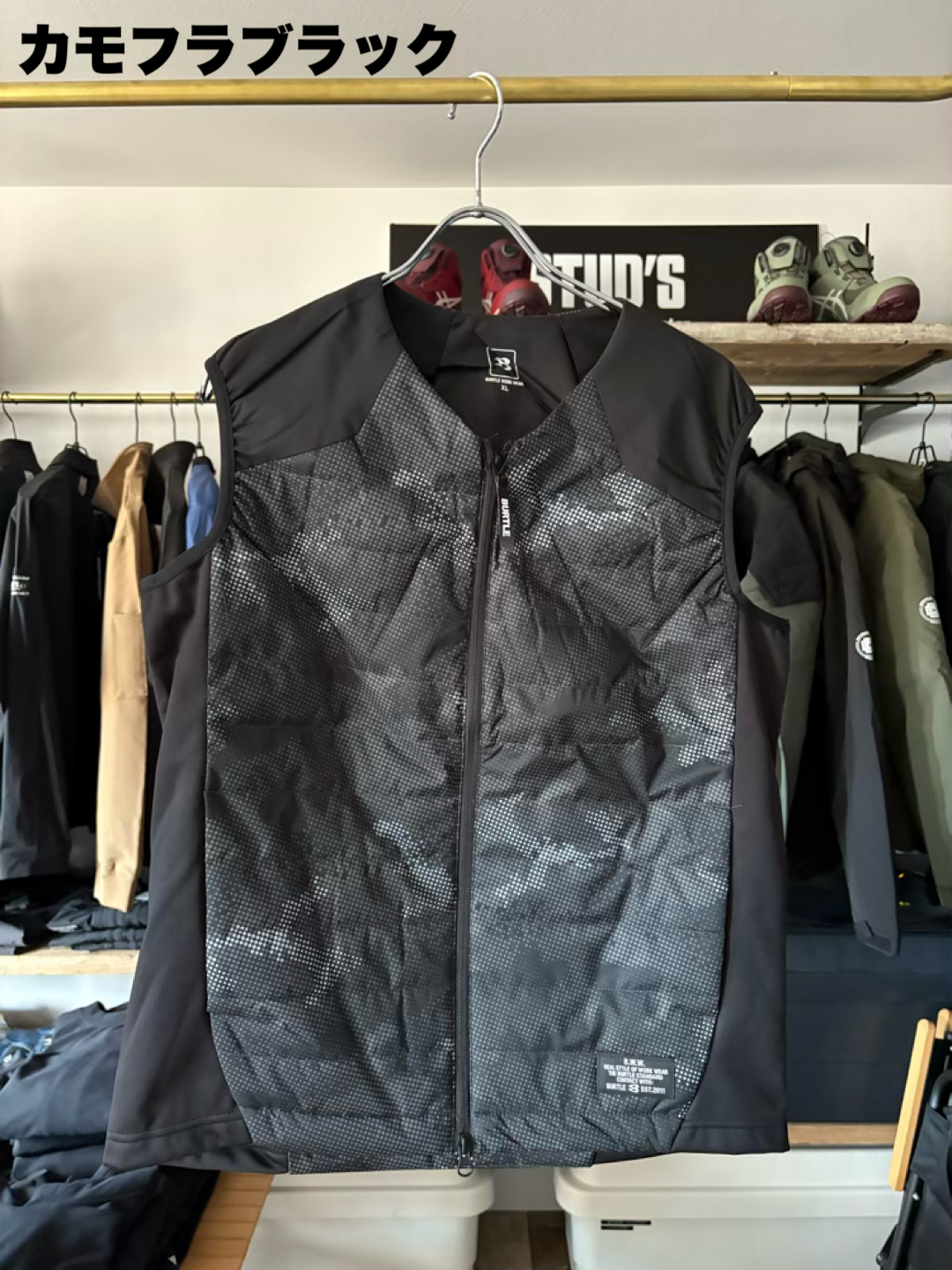 ■バッテリーを使用した発熱テクノロジー、サーモクラフト(電熱パッド)を装着できる仕様をボディ内側に施し、保温力の高い着用を実現