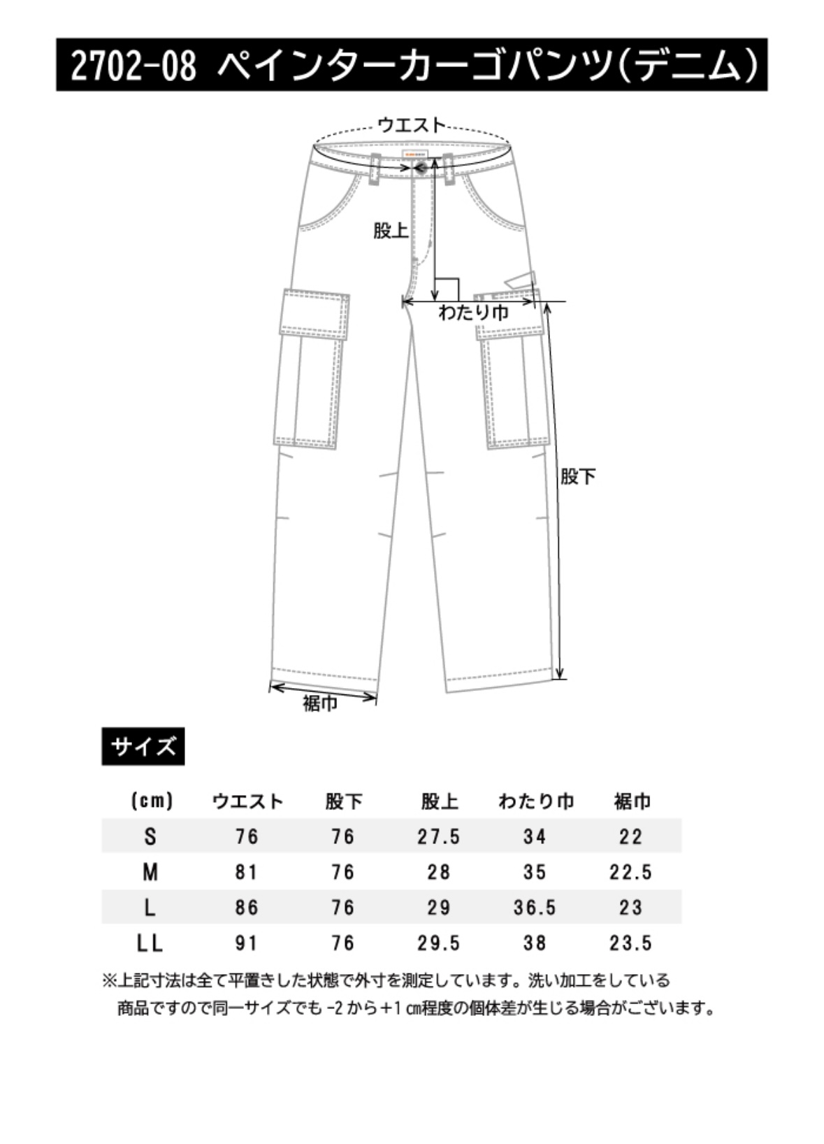【BEAMS DESIGN】ビームスデザイン ペインターカーゴパンツ(デニム) 2702-08