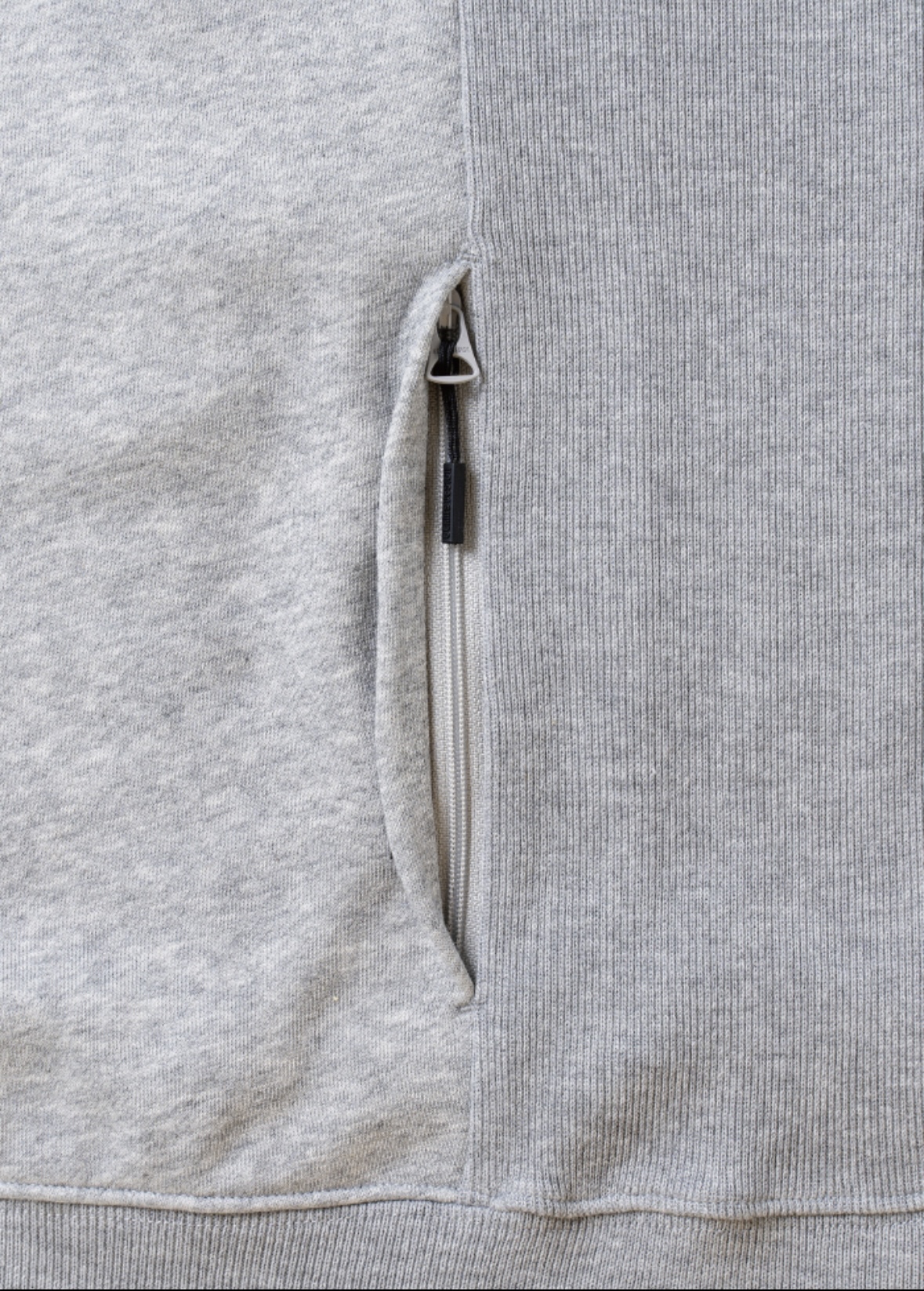 脇ポケットにはコンシールファスナーを採用することでベーシックな雰囲気を崩さず落下防止として使えます。