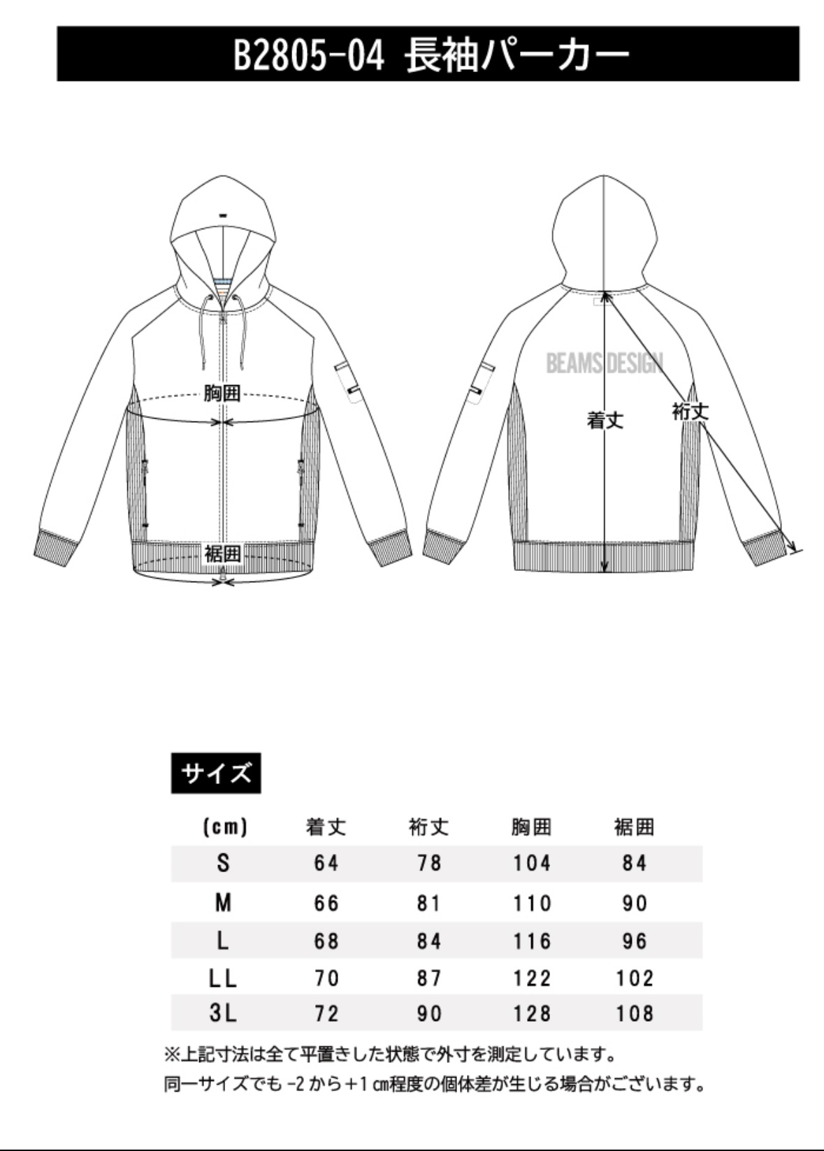 【BEAMS DESIGN】ビームスデザイン 長袖パーカー B2805-04