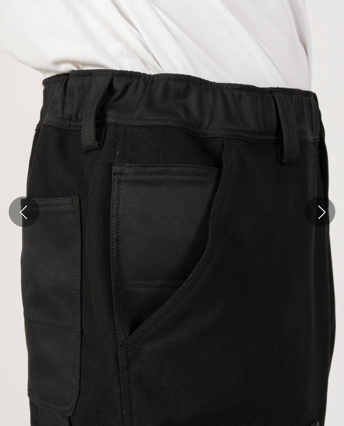 微起毛タッチの快適素材「ブラッシュツイル」を使用し、速乾性と保温性を両立させた現場仕様のダブルニーパンツ。