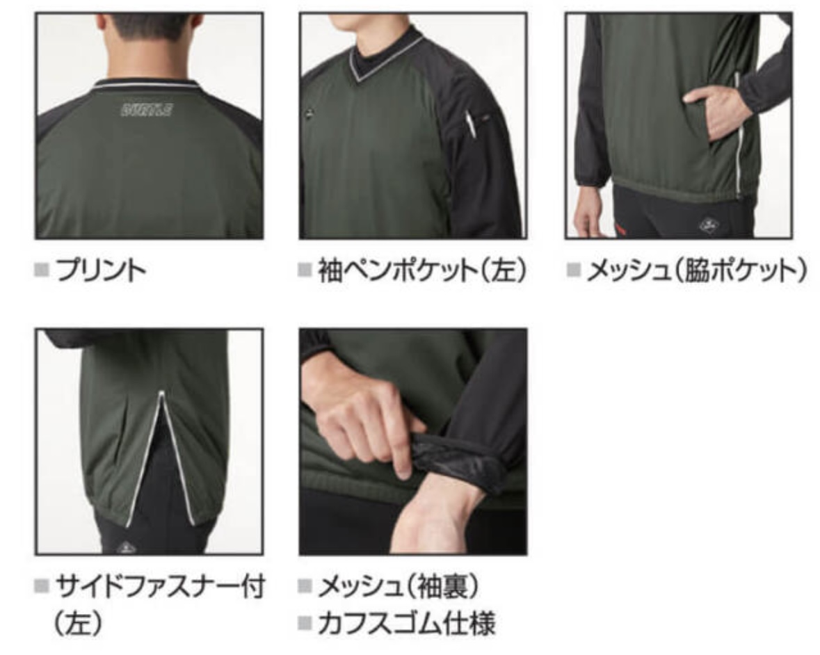 表地 : ストレッチニット(伸長率40%以上)、ラミネートコーティング、撥水加工