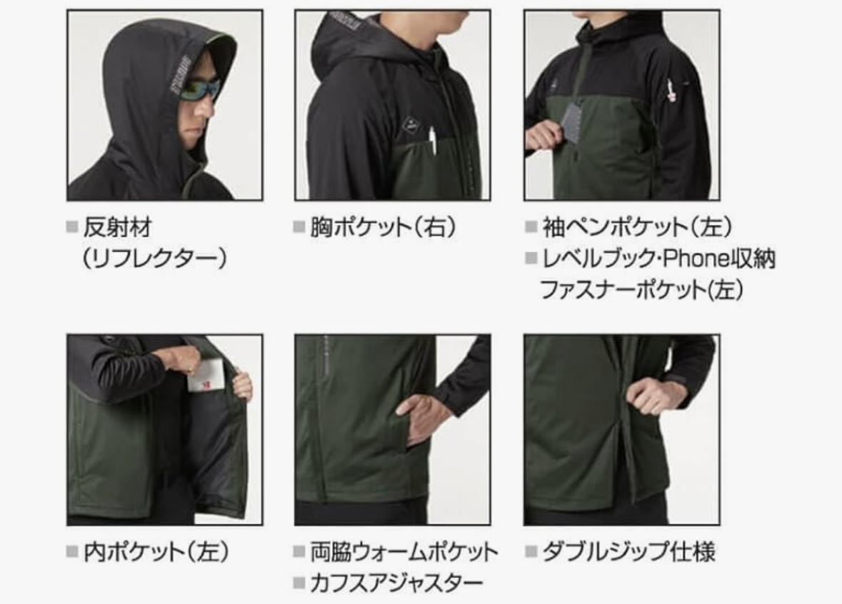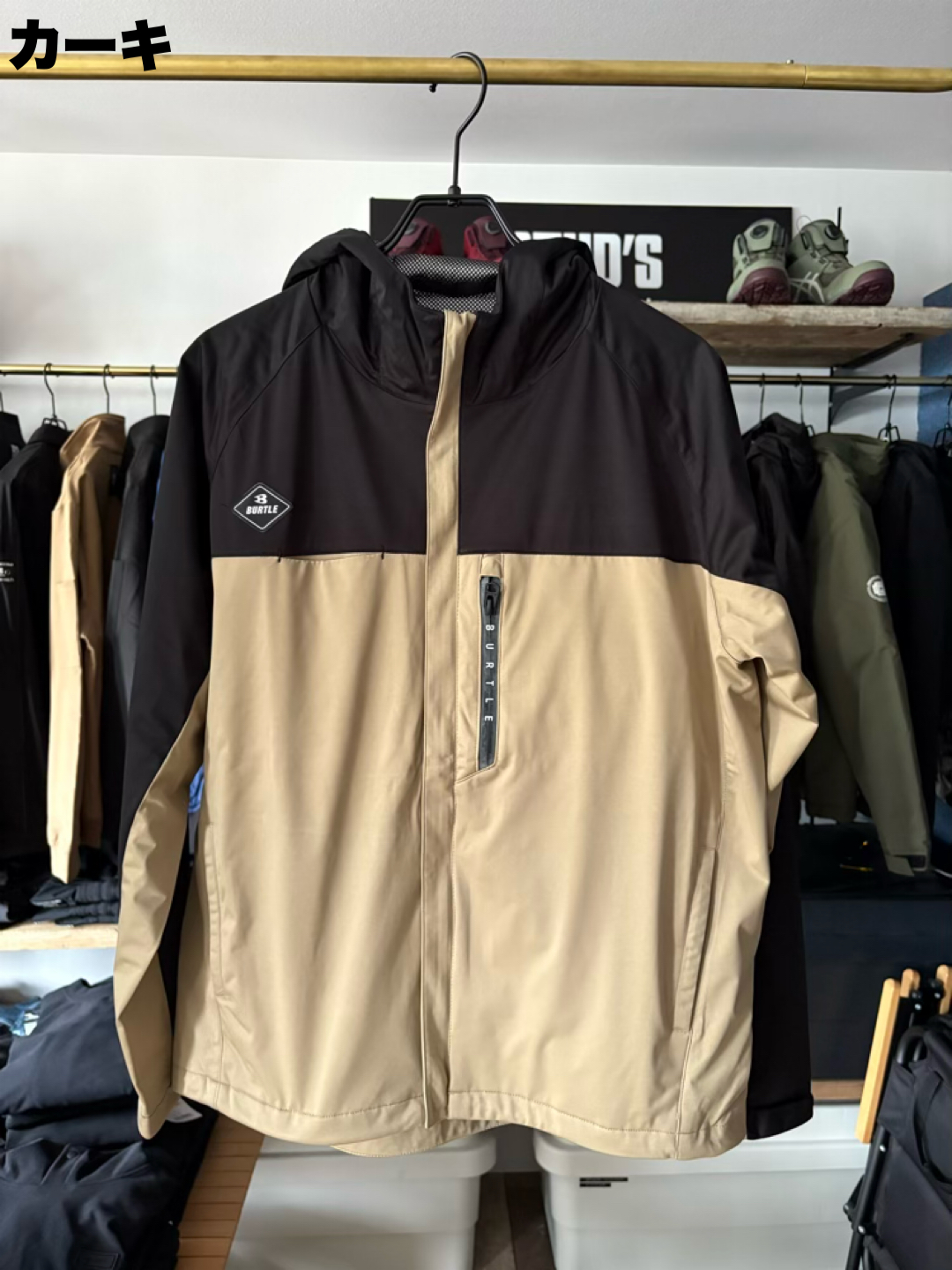 表地 : ストレッチニット(伸長率40%以上)、ラミネートコーティング、撥水加工