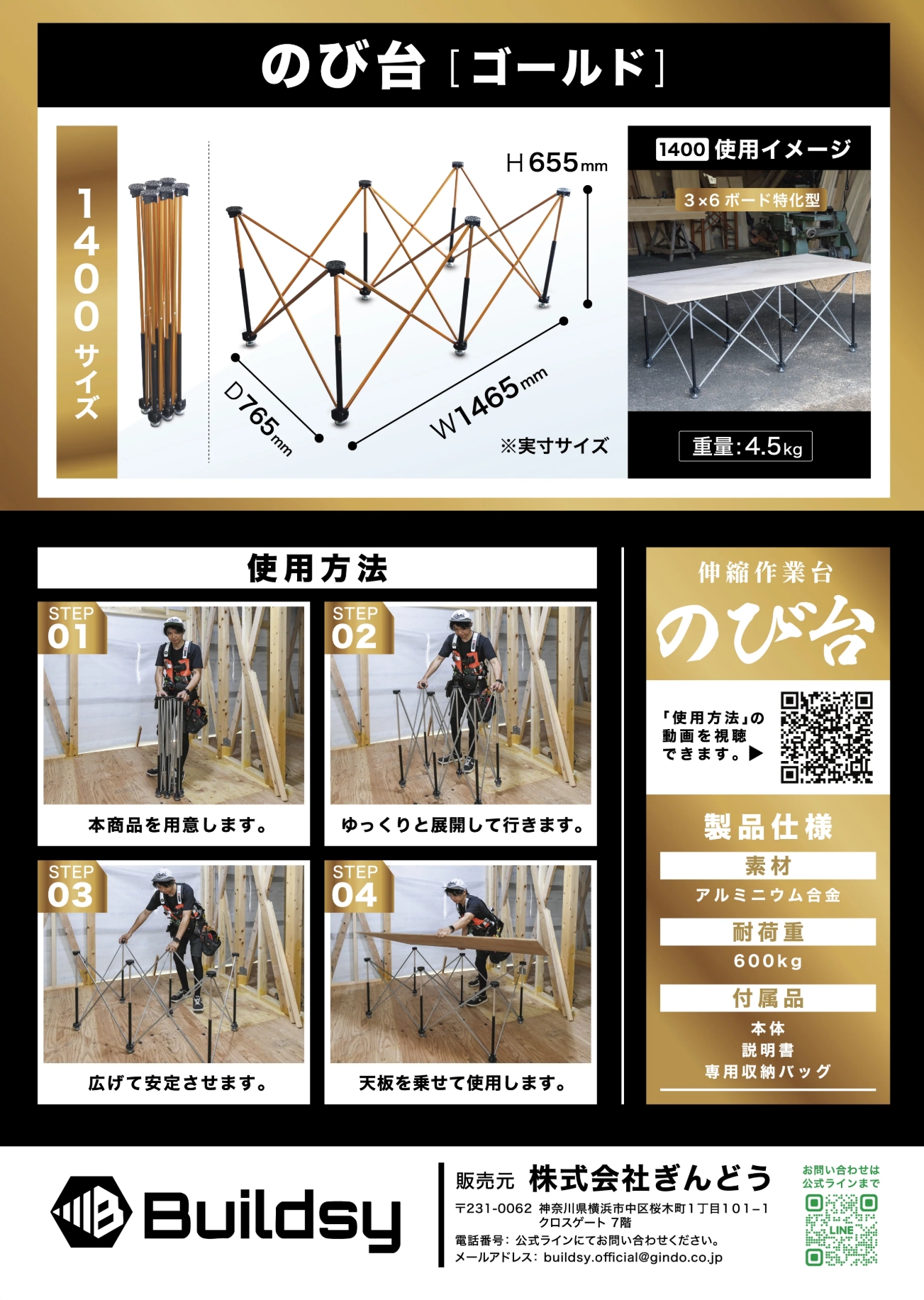 【Buildsy】 のび台 限定ゴールドカラー W1400H650